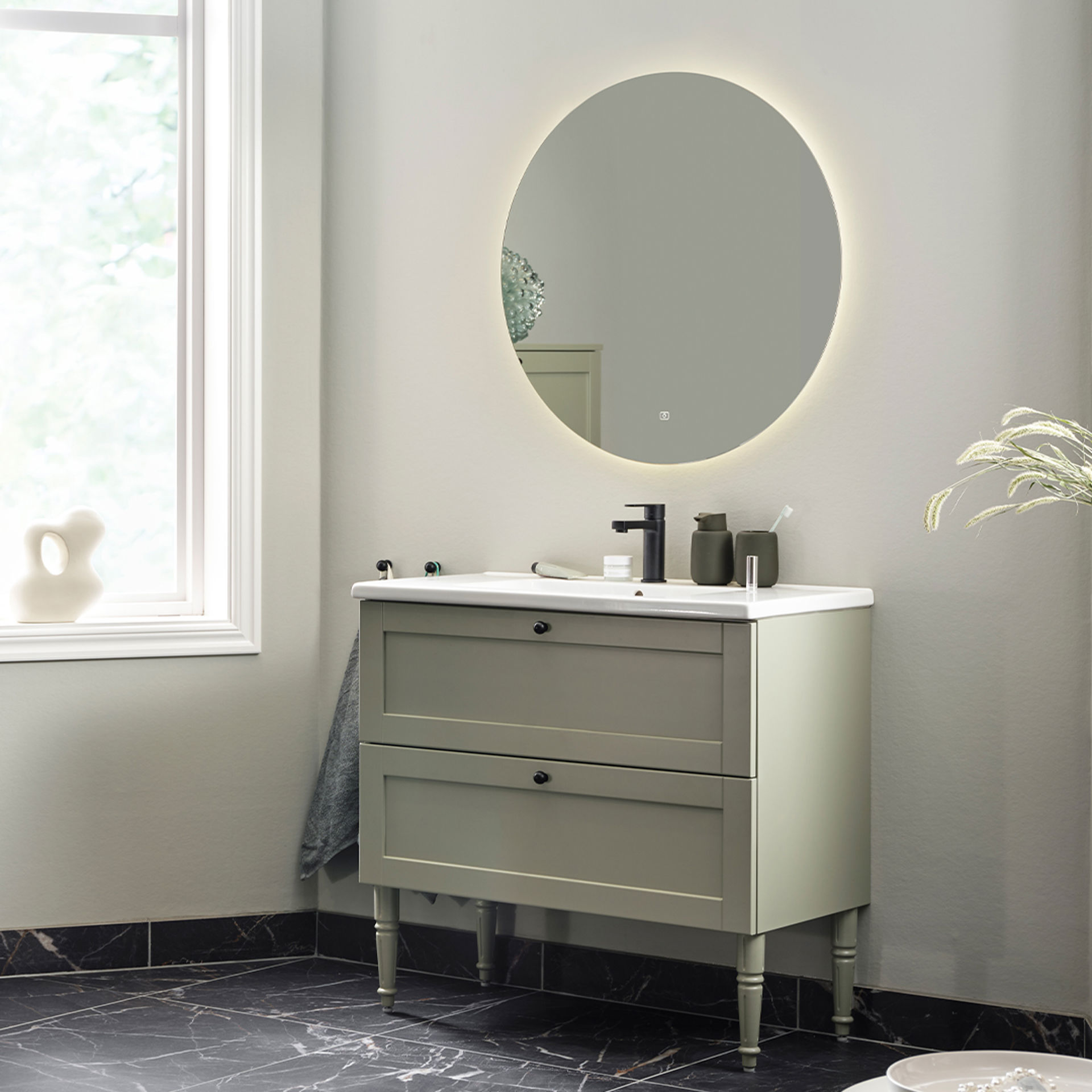 Free finns i bredderna 400, 500, 600 och 900 mm med luckorna Maja, Thea, Alice och Edit i alla våra standardkulörer, melaminluckan Elsa och Nora, samt luckan Molly i fanér. Du väljer antingen tvättstället Free i porslin eller tvättstället Found med Evermite-yta. Kommoden i bredderna 500 och 600 mm finns även som Friend, med en hel låda och ett hyllplan. Vattenlåset Easy Clean, lådindelning och gummimattor ingår. Kommoden i bredderna 500, 600 och 900 mm är dessutom tillgänglighetsanpassad. Genom att väggmontera tvättställen kan kommoden tas bort utan att vattnet kopplas bort.