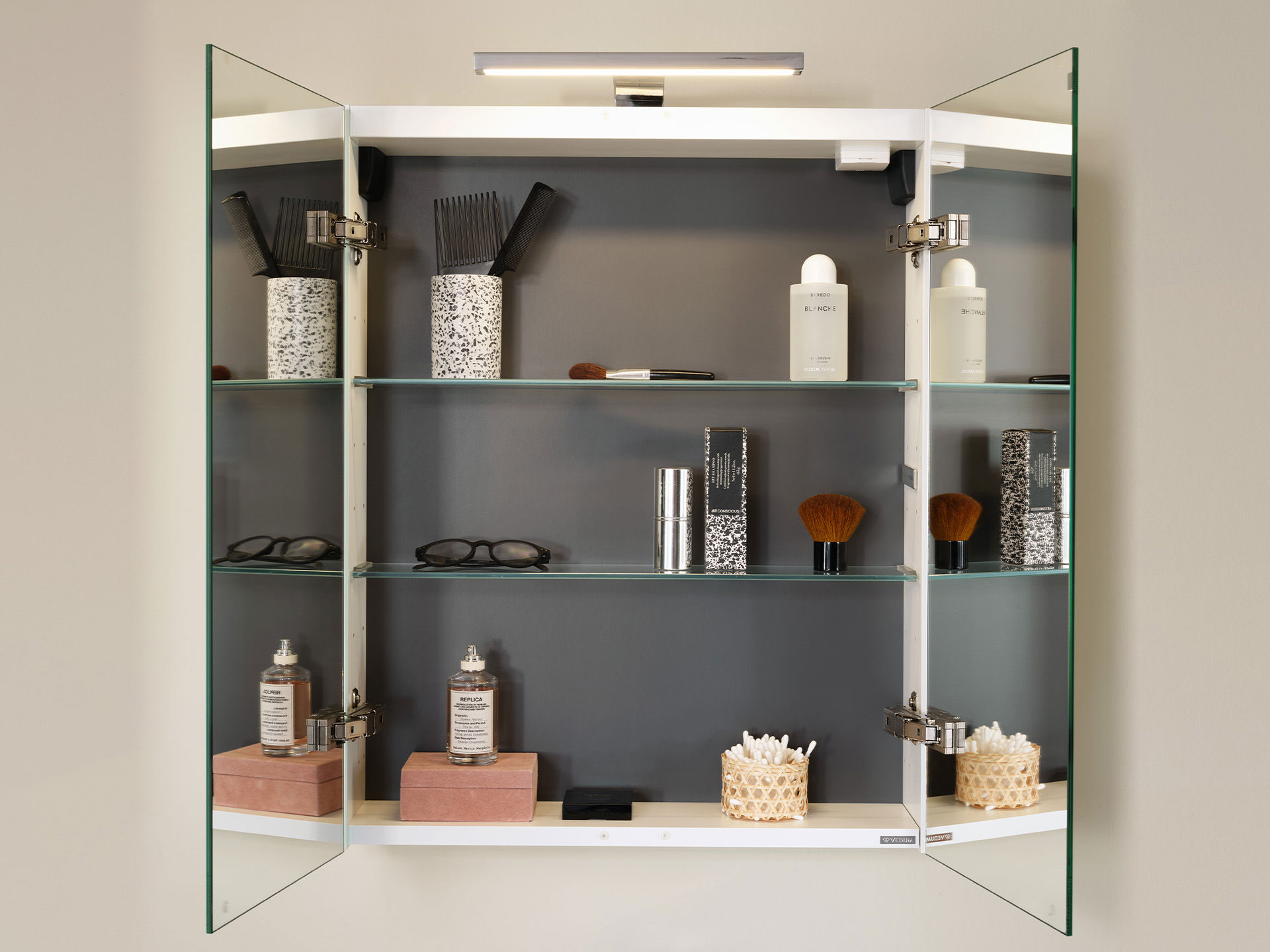 Spegelskåp Viken finns i anpassade bredder och olika utföranden. Dubbelsidiga spegelluckor med dämpning.