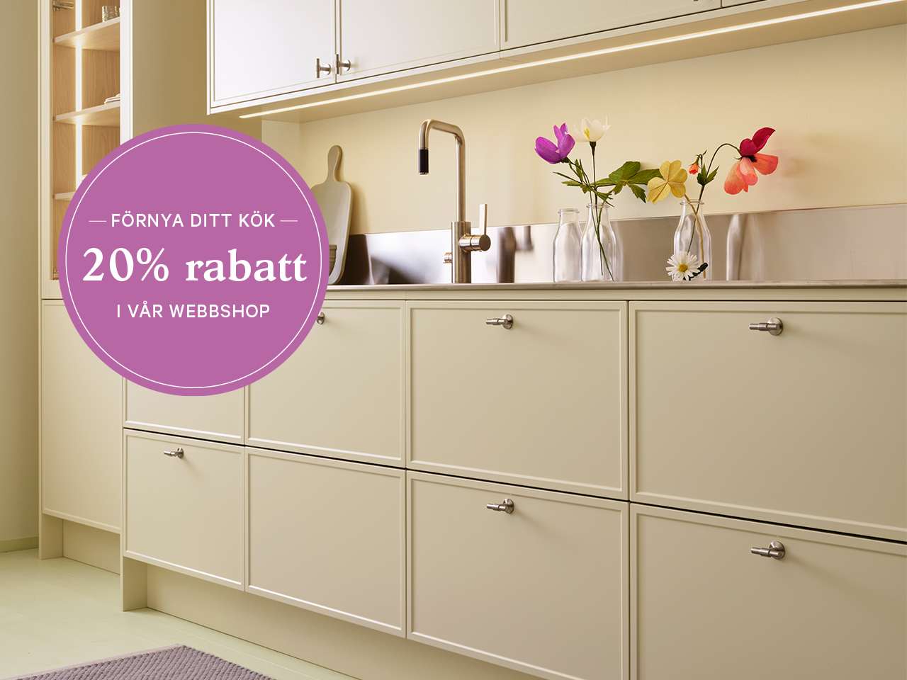 Vi hjälper dig genom hela processen, från planering till montering och erbjuder ett brett urval av stilar, material och kulörer för att du ska kunna skapa en personlig och hållbar inredning. Våra leveranser sker med fossilfria transporter och inredningen levereras monterad och klar.