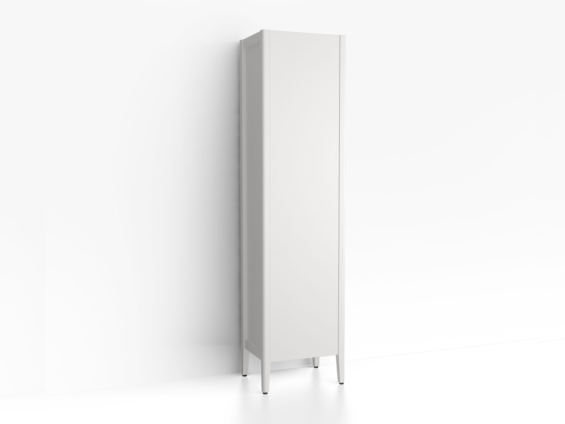 Högskåp i bredd 480 mm som passar till serien Anno. Finns i vitt eller kulör. Valfri hängning av lucka. En fast hylla och fyra flyttbara glashyllor ingår.