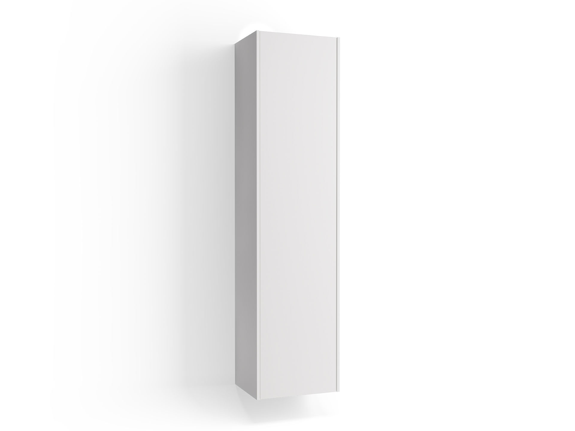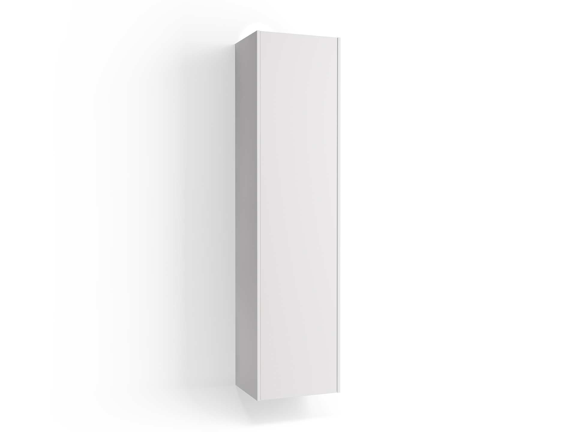Högskåp i bredd 400 mm. Valfri hängning av lucka. En fast hylla och fyra flyttbara glashyllor. Handtag ingår ej.