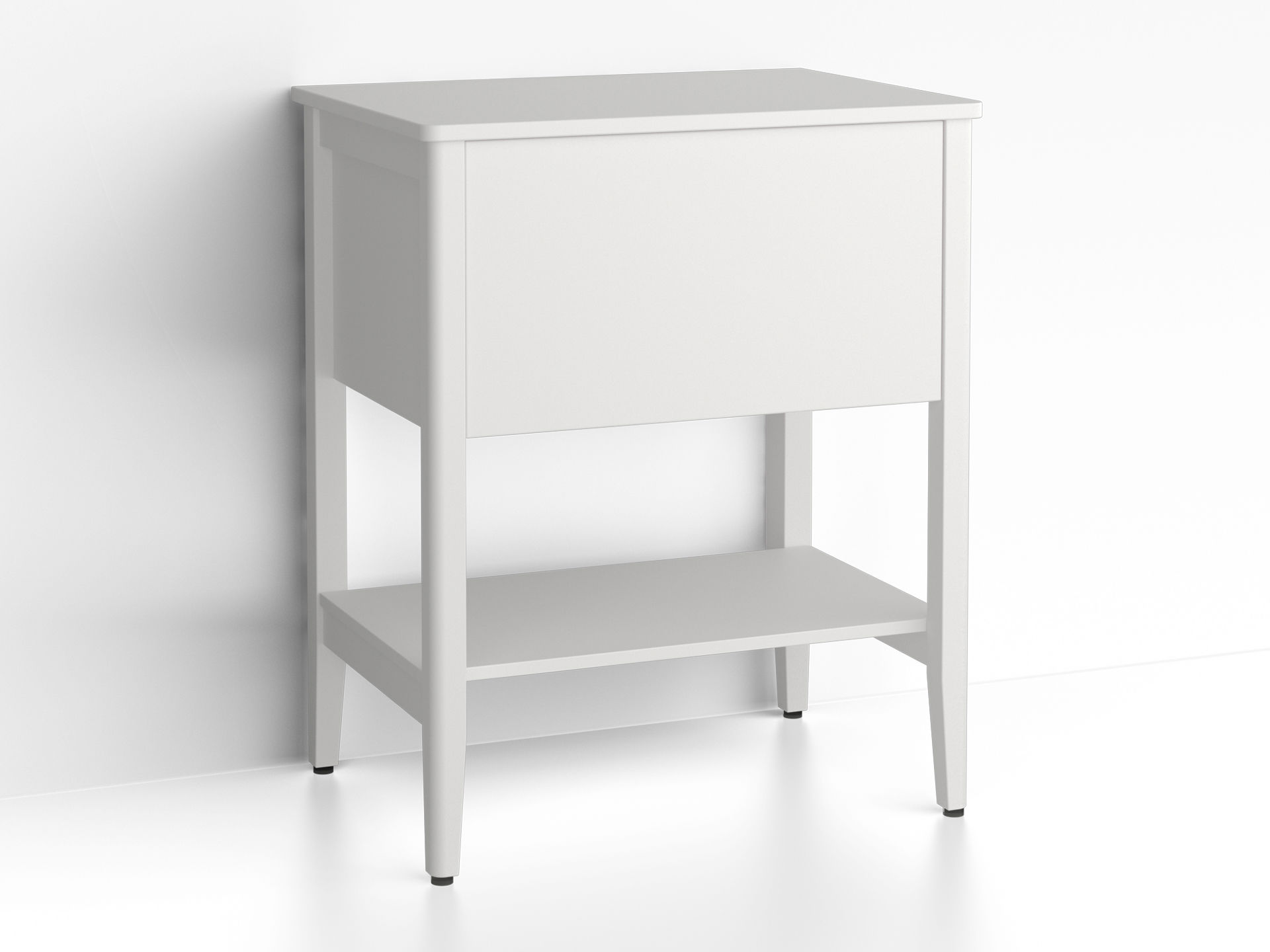 Fin förvaringsmöbel med bengavlar som ska monteras mot vägg. Topplatta ingår ej, komplettera med topplatta Anno 700. Består av en låda med dämpning och gummimatta samt en hylla undertill. Handtag ingår ej.
