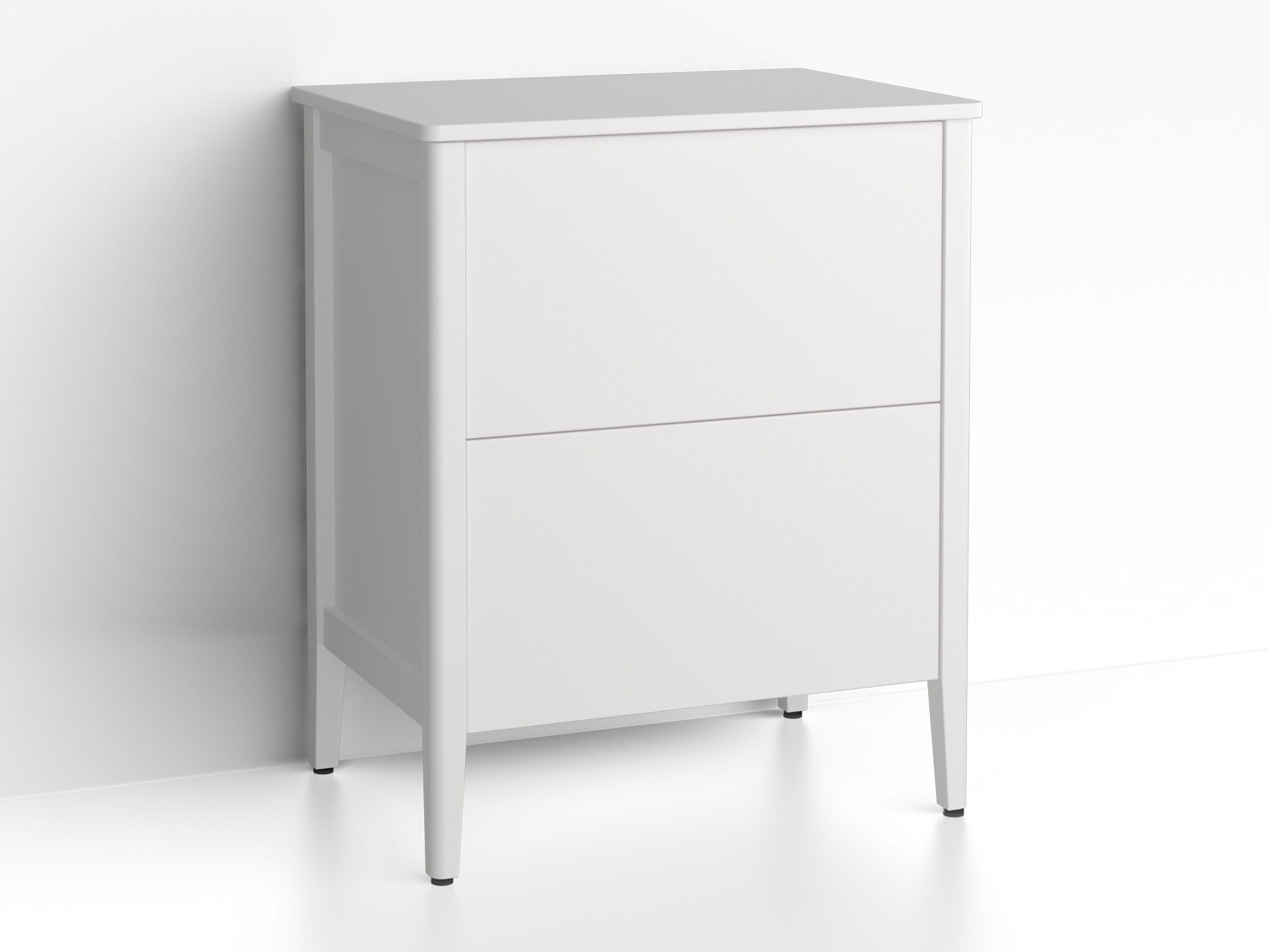 Fin förvaringsmöbel med bengavlar som ska monteras mot vägg. Topplatta ingår ej, komplettera med topplatta Anno 700. Består av två lådor med dämpning och gummimatta. Handtag ingår ej.