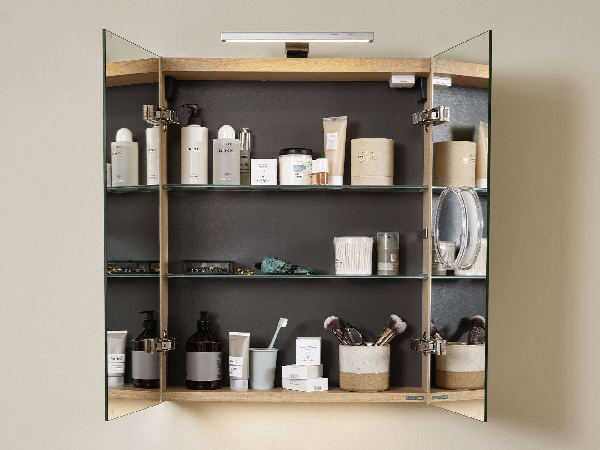 Spegelskåp Fryken finns i anpassade bredder och olika utföranden. Dubbelsidiga spegelluckor med dämpning.