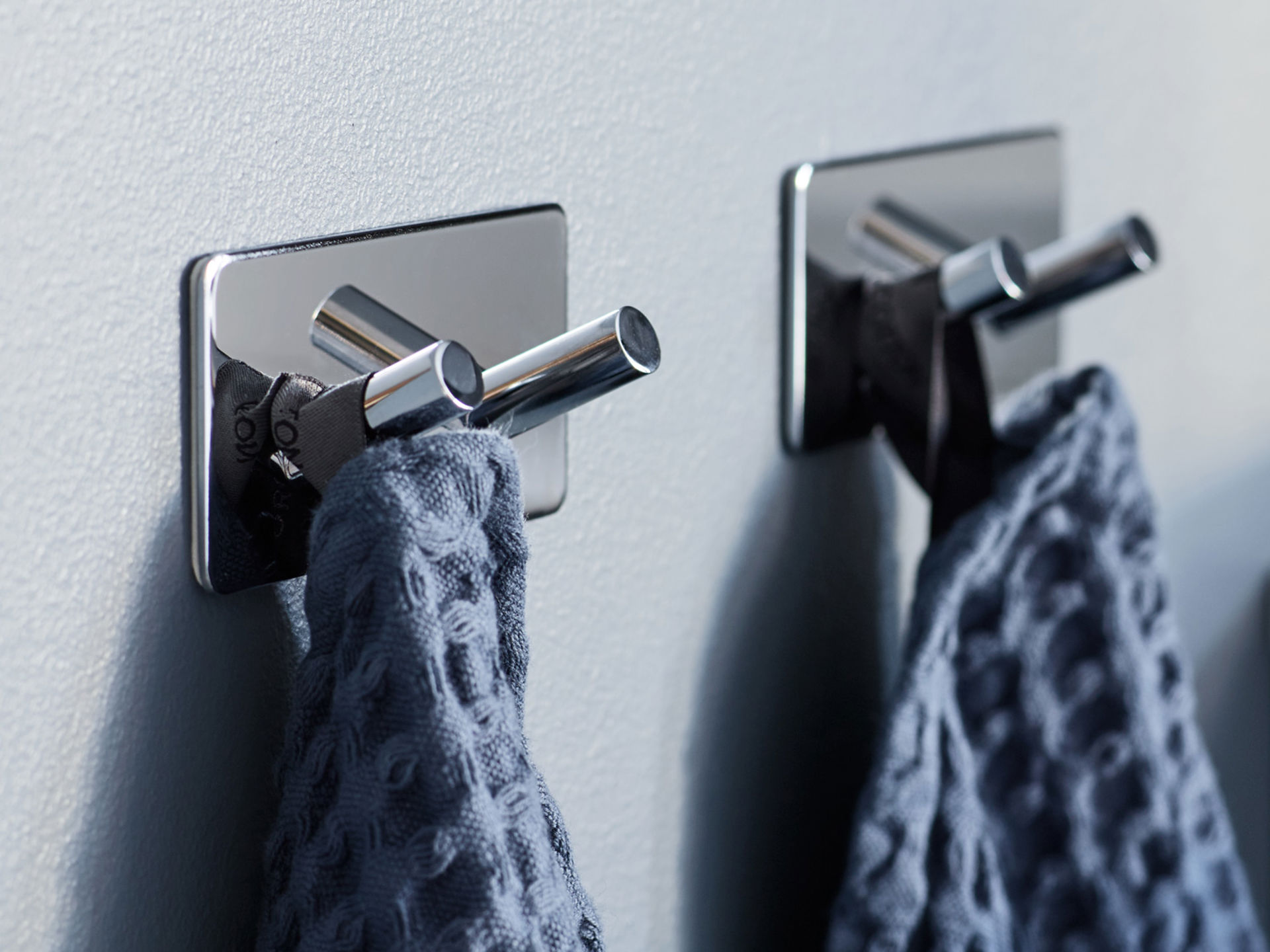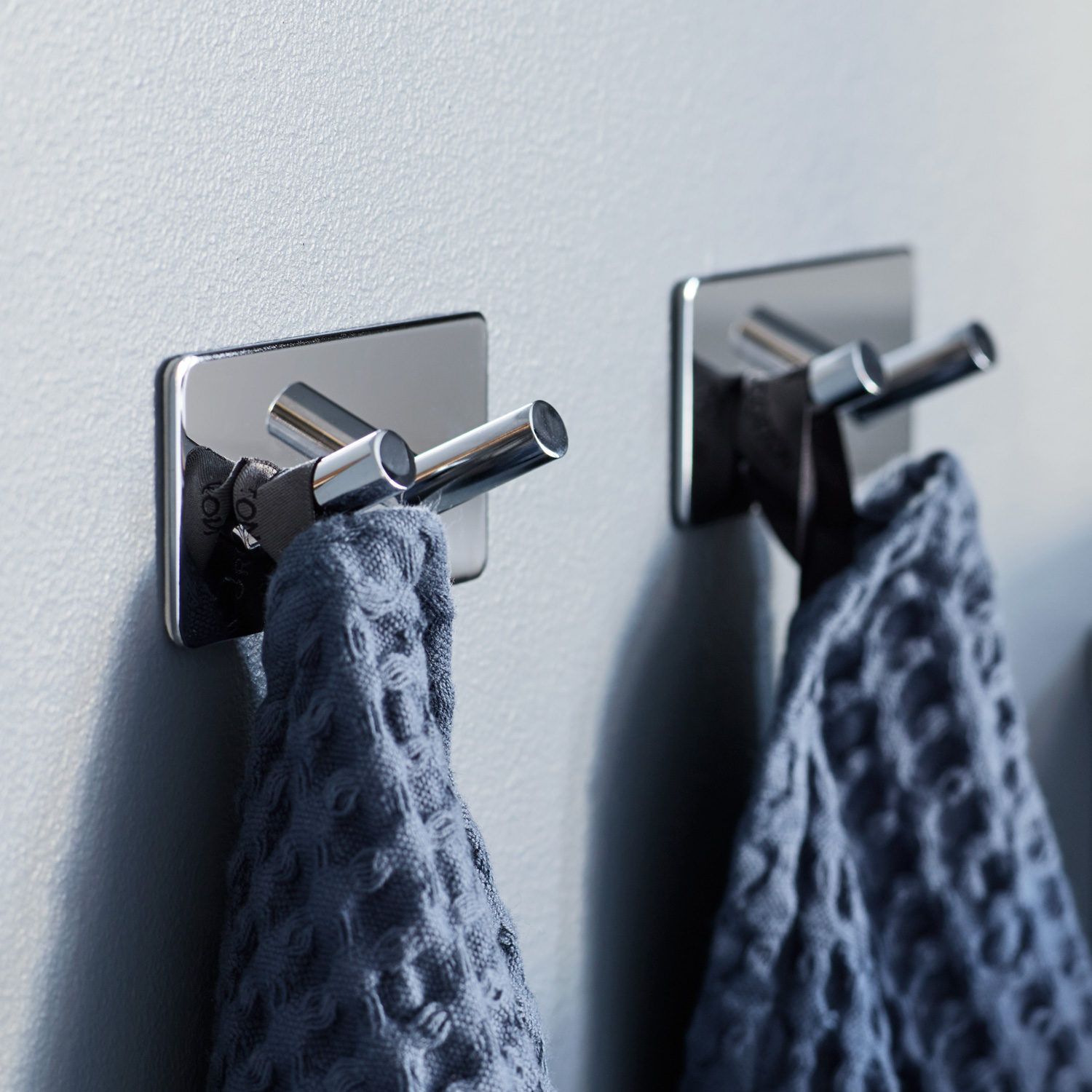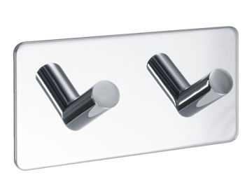 Rostfritt stål med kromfinish. Självhäftande baksida. Enkel att montera utan att borra.