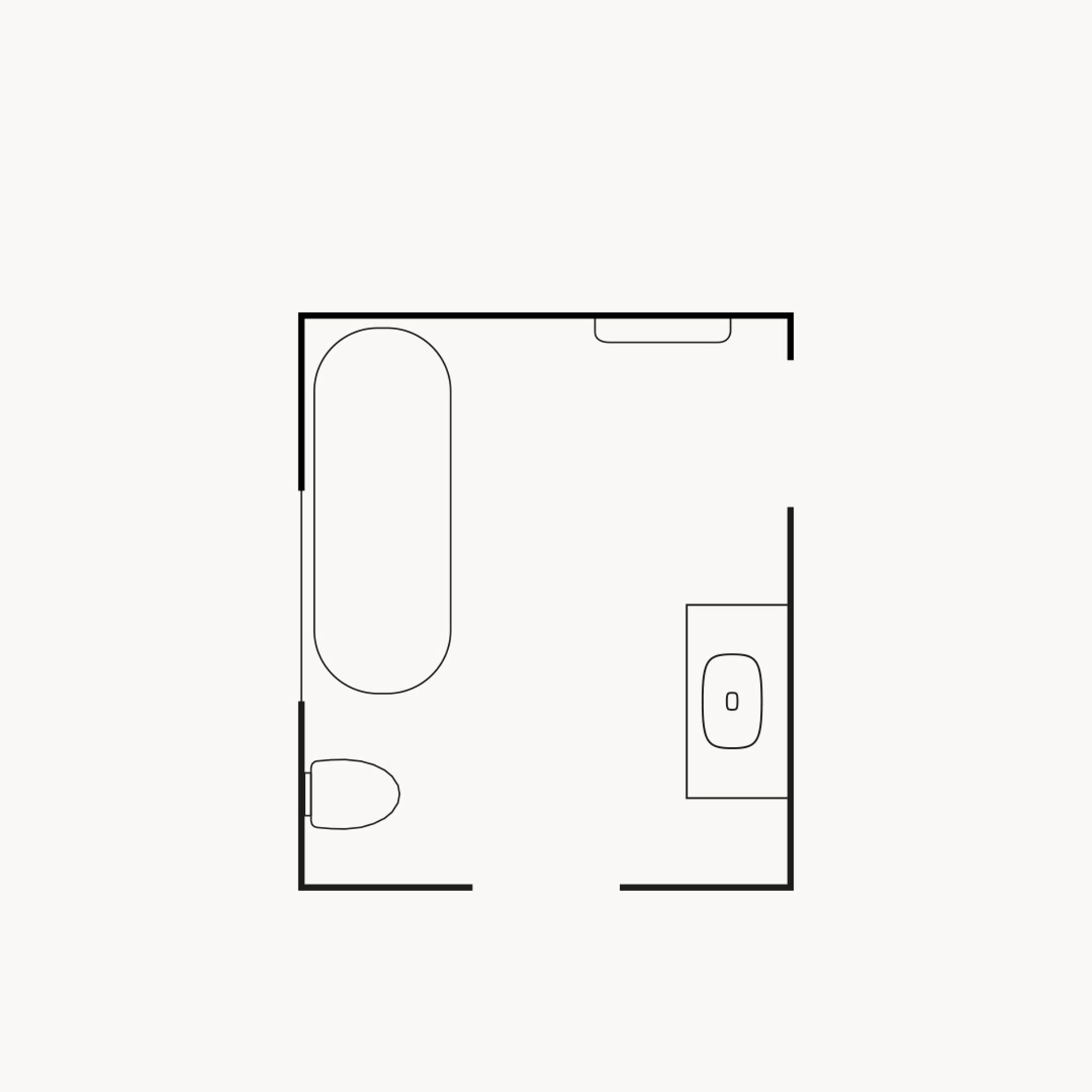 Stilrent badrum med naturnära färgsättning och taktila material.
