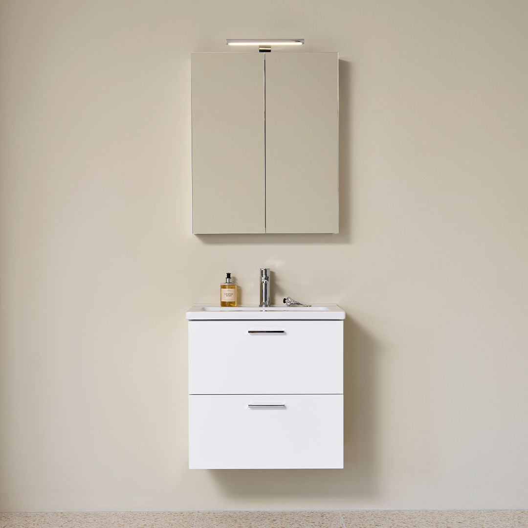 Under 2025 erbjuder vi fantastiska kampanjpriser på vår populära serie Free!* Kombinera Free 600 Compact Maja vit med antingen spegelskåp Viken eller vår runda LED-spegel Säven för att skapa den kombination som passar dig och ditt badrum bäst.
