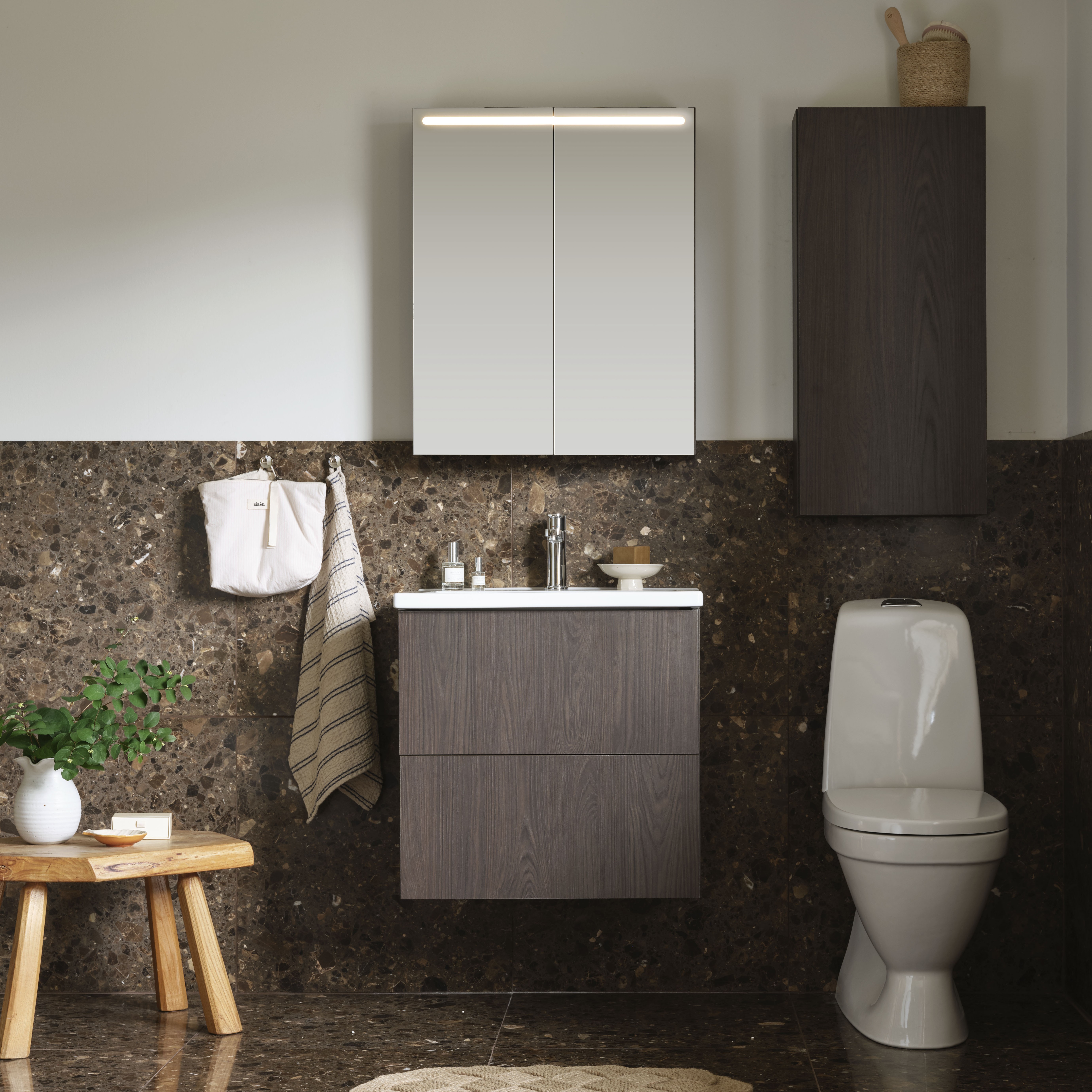 Under 2026 erbjuder vi fantastiska kampanjpriser på vår populära serie Free!* Kombinera Kommod Free 600 Compact + spegelskåp Viken för att skapa den kombination som passar dig och ditt badrum bäst.