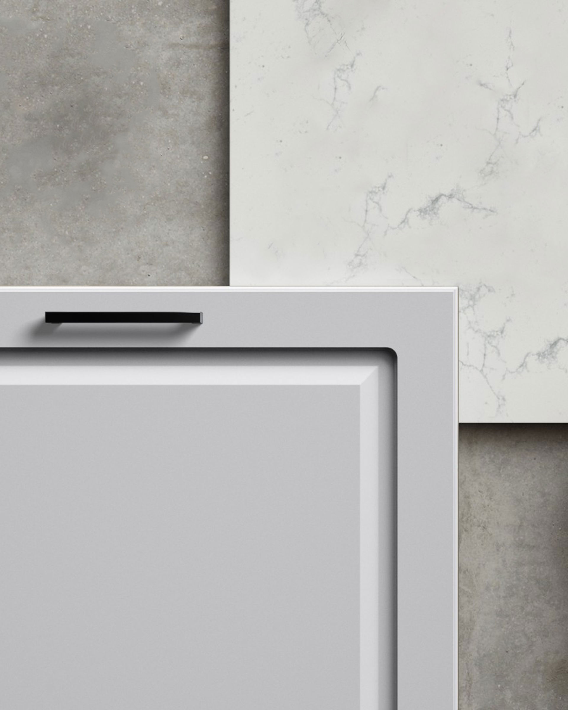 Målad lucka 19 mm MDF-board med fräst profil och svagt rundad kant. Finns också i vitrin med klarglas till högskåp. Kan fås i vitt eller i någon av våra kulörer.