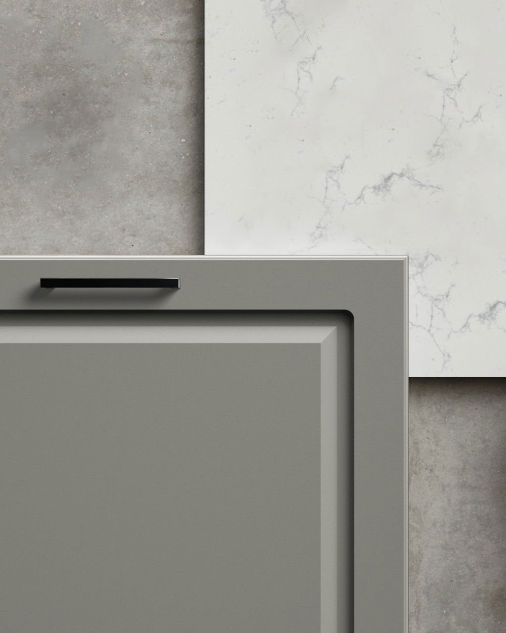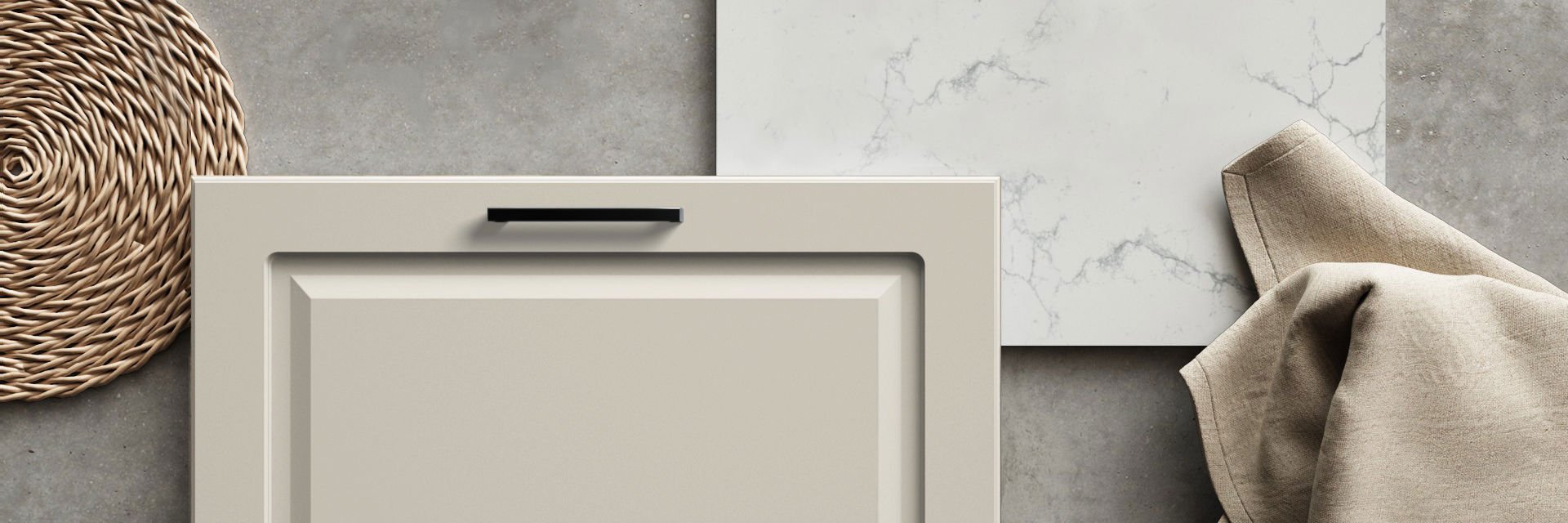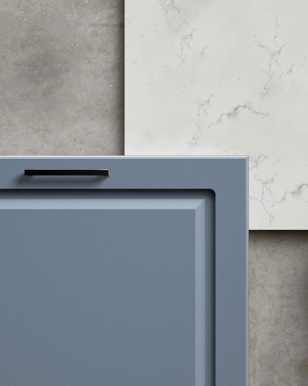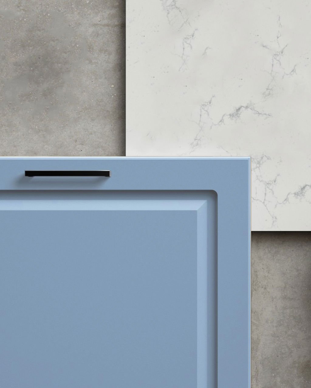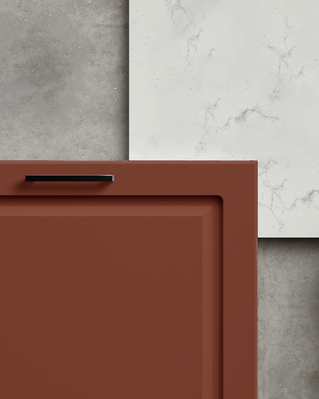 Målad lucka 19 mm MDF-board med fräst profil och svagt rundad kant. Finns också i vitrin med klarglas till högskåp. Kan fås i vitt eller i någon av våra kulörer.