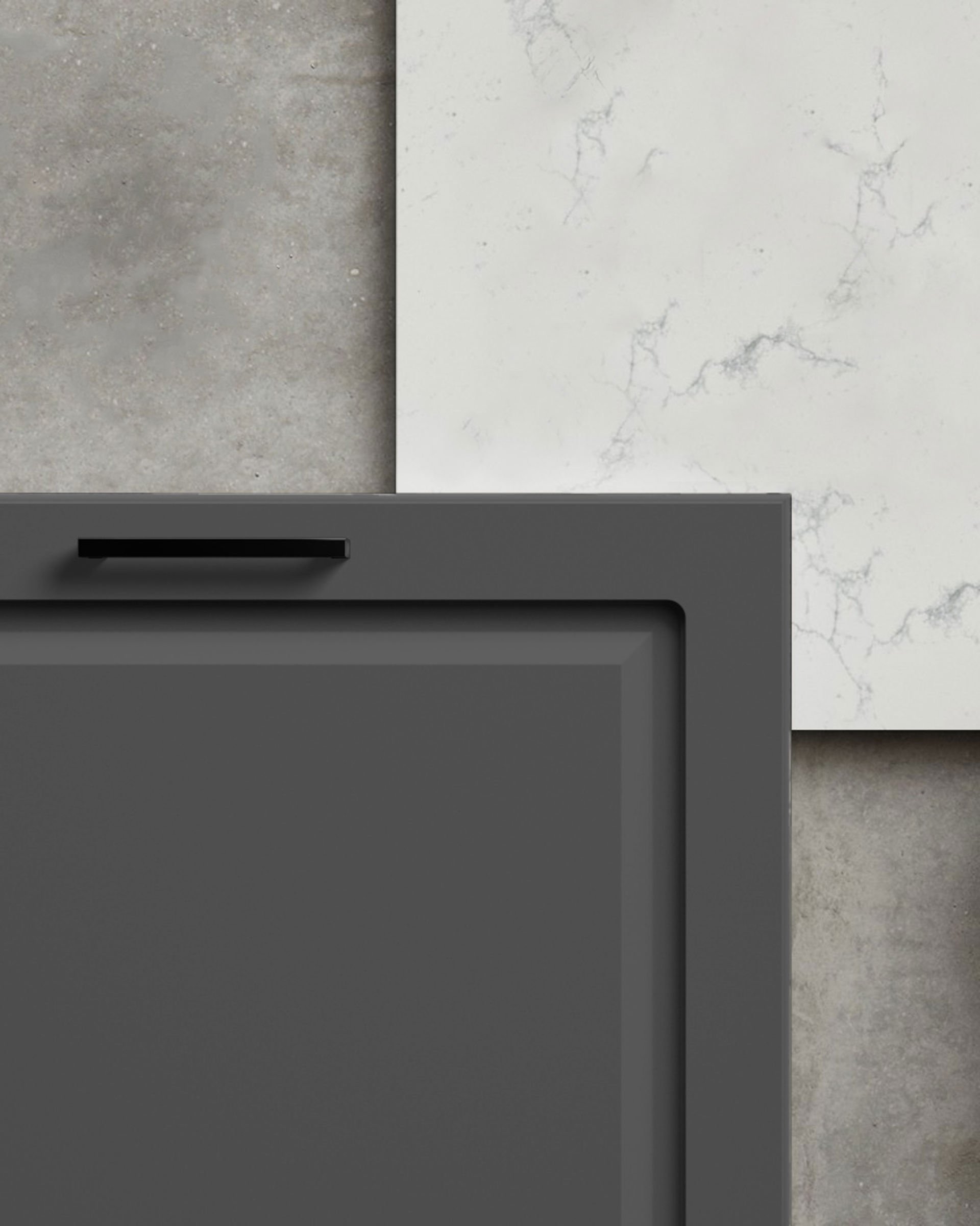 Målad lucka 19 mm MDF-board med fräst profil och svagt rundad kant. Finns också i vitrin med klarglas till högskåp. Kan fås i vitt eller i någon av våra kulörer.