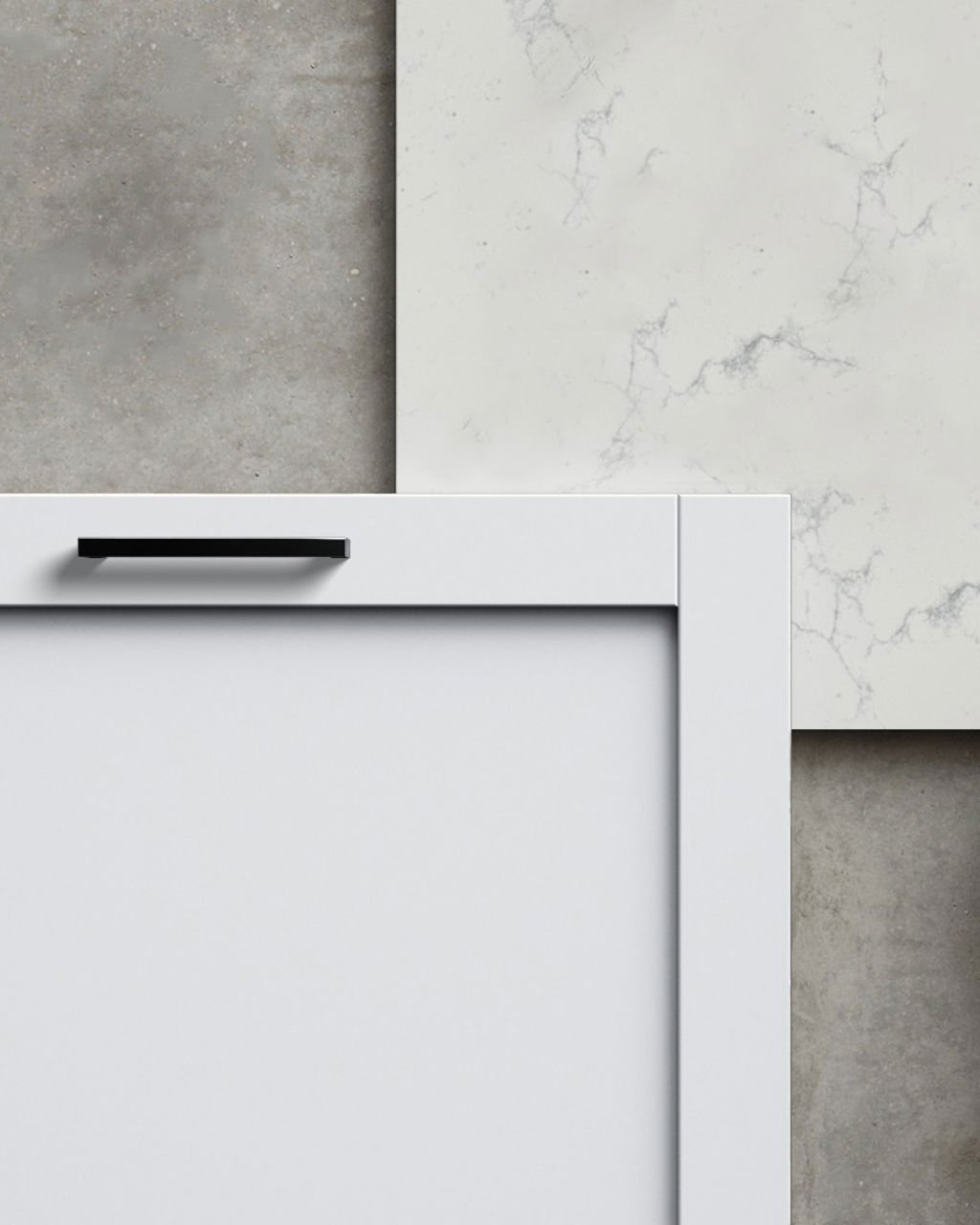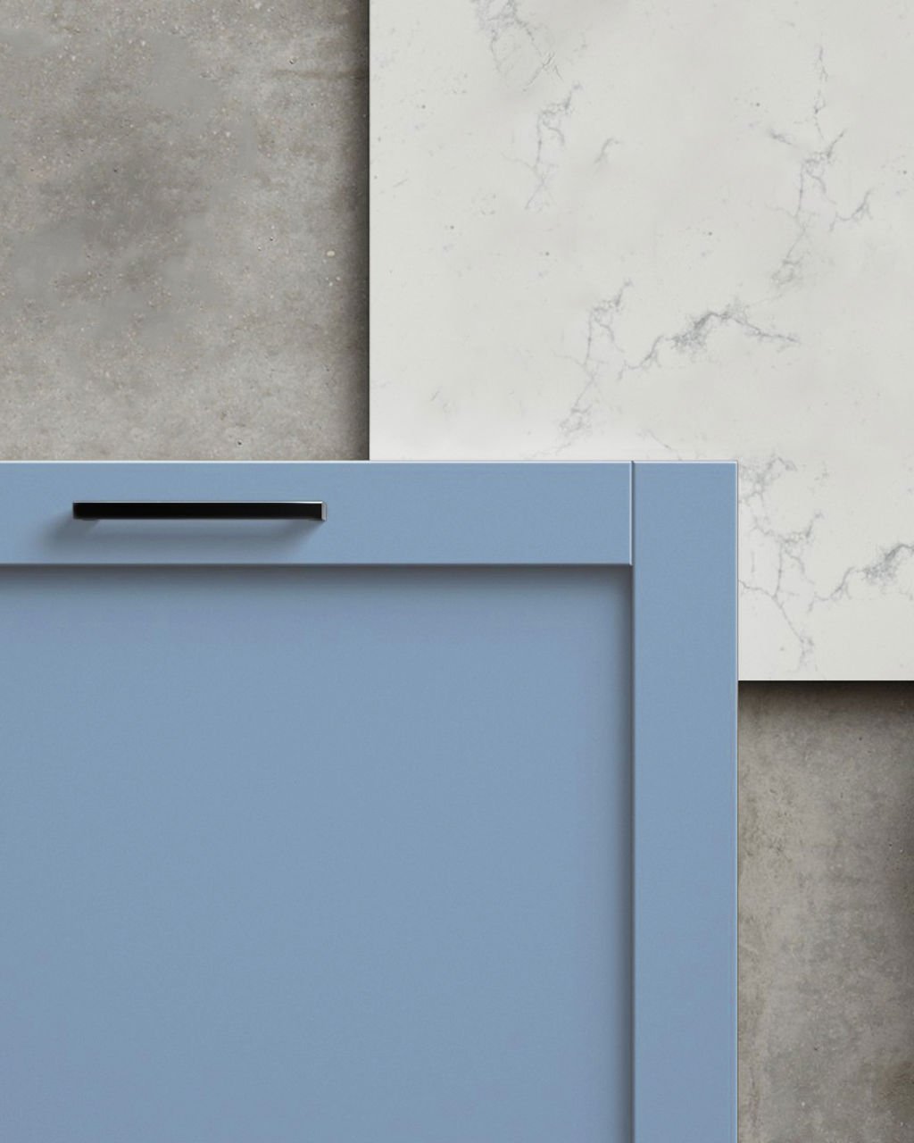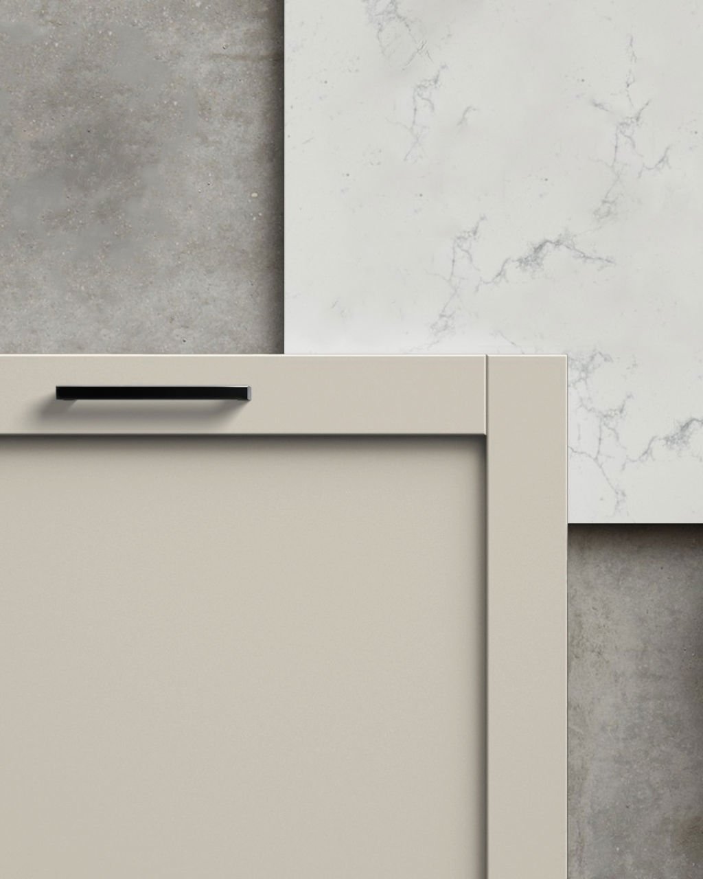 Målad lucka 19 mm MDF-board med ram och slät spegel, svagt rundad kant. Kan fås i vitt eller i någon av våra kulörer.