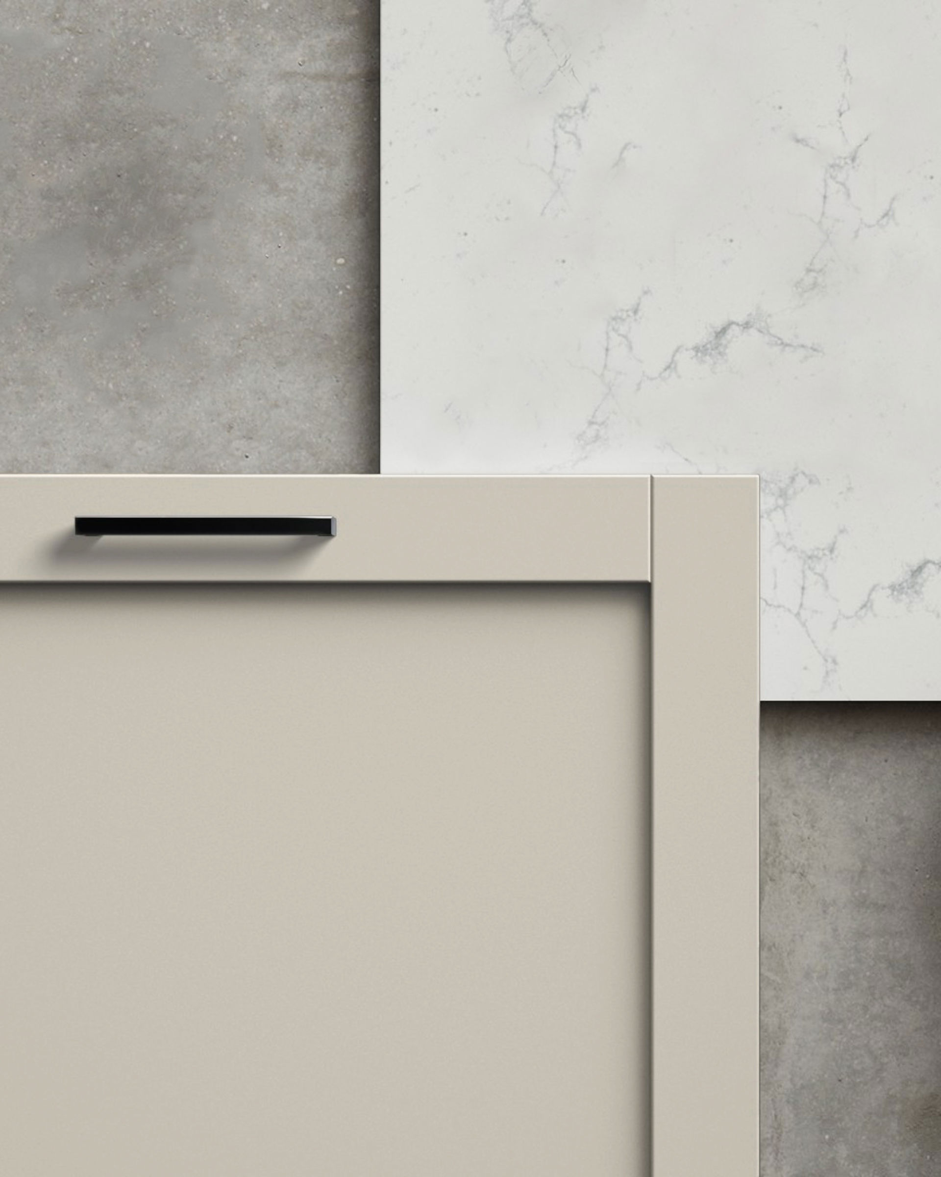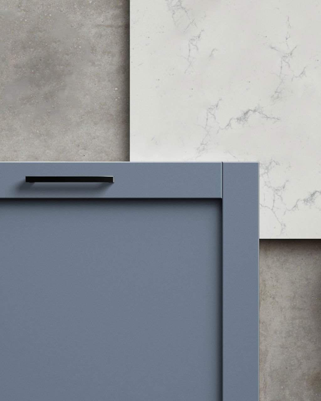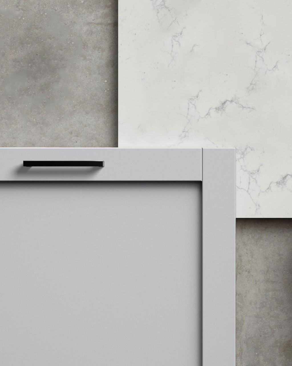 Målad lucka 19 mm MDF-board med ram och slät spegel, svagt rundad kant. Kan fås i vitt eller i någon av våra kulörer.