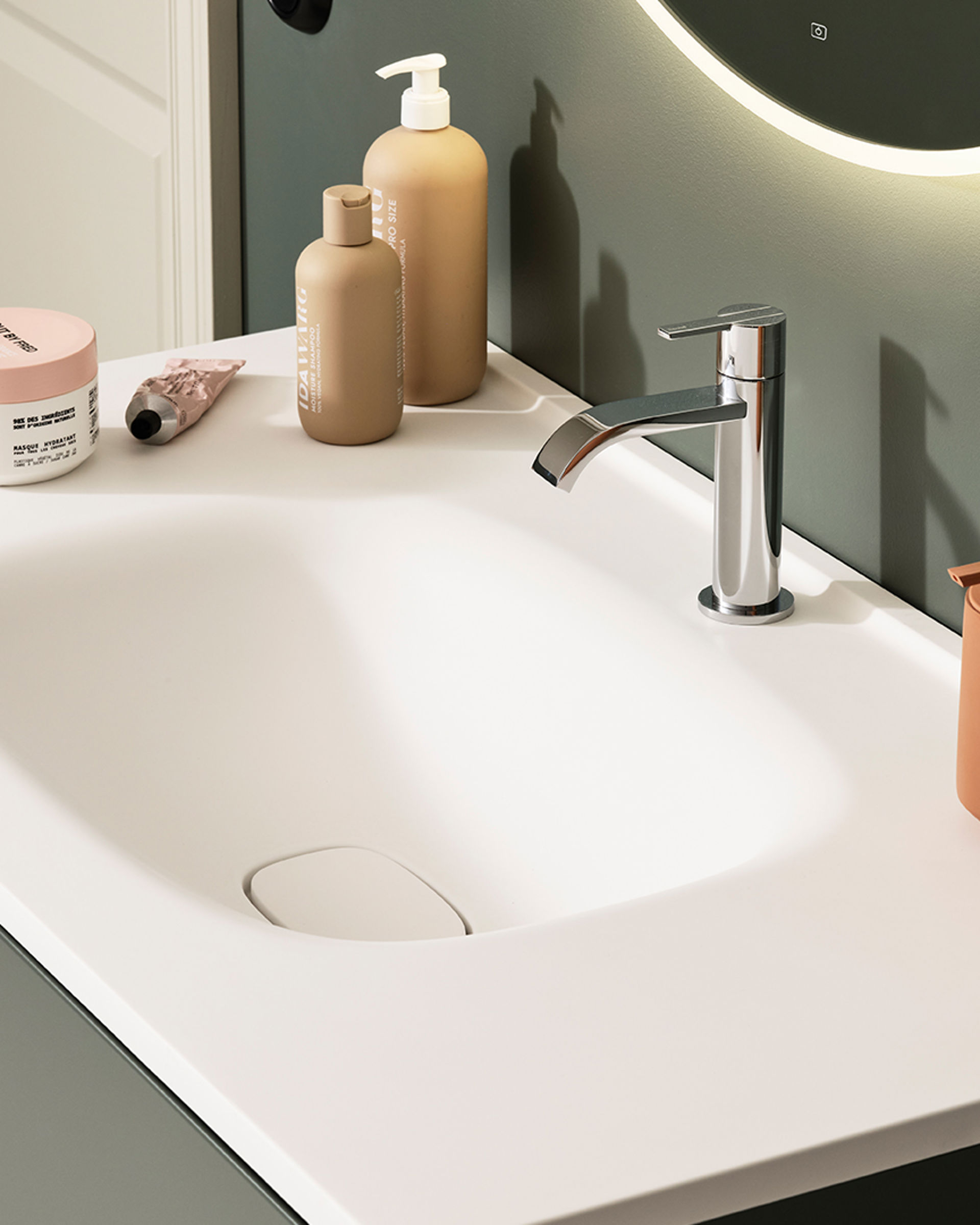 Ett tvättställ med mjuka former och ett harmoniskt uttryck.