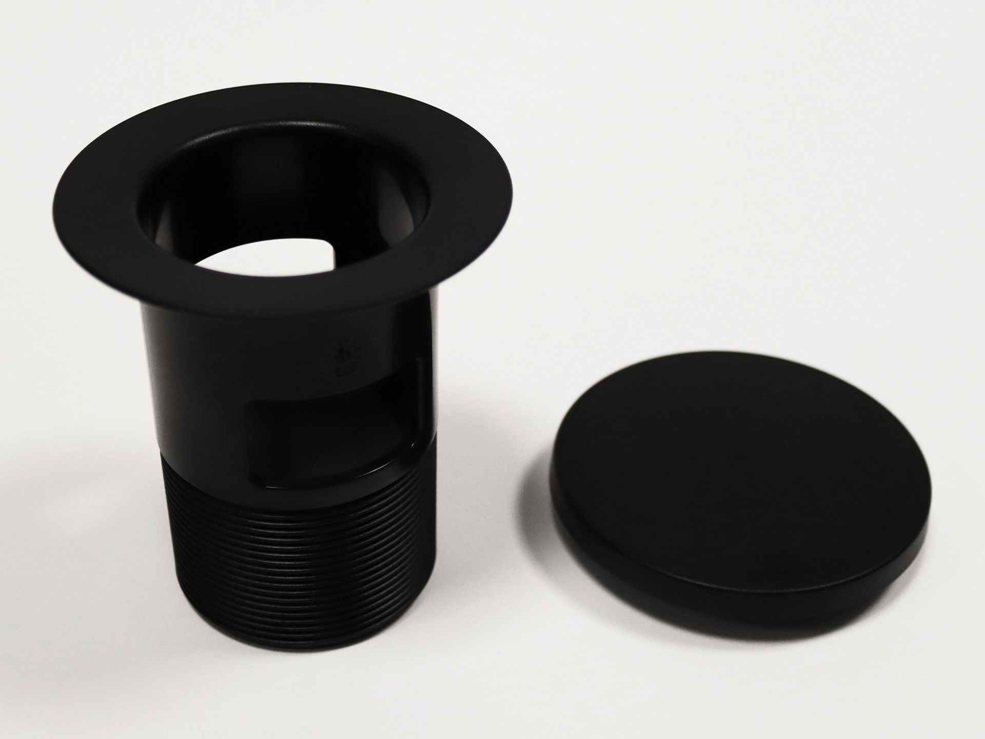 Cover och insats i svartmålad plast till bottenventil Easy Clean. Svanenmärkt. Kombineras med vattenlås Easy Clean pop-up art.nr. 54921.