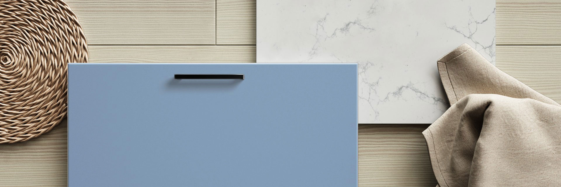 Målad lucka av 16 mm MDF-board med svagt rundad kant. Levereras i alla kulörer mot kulörtillägg med några få undantag. Finns också i vitrin med klarglas.