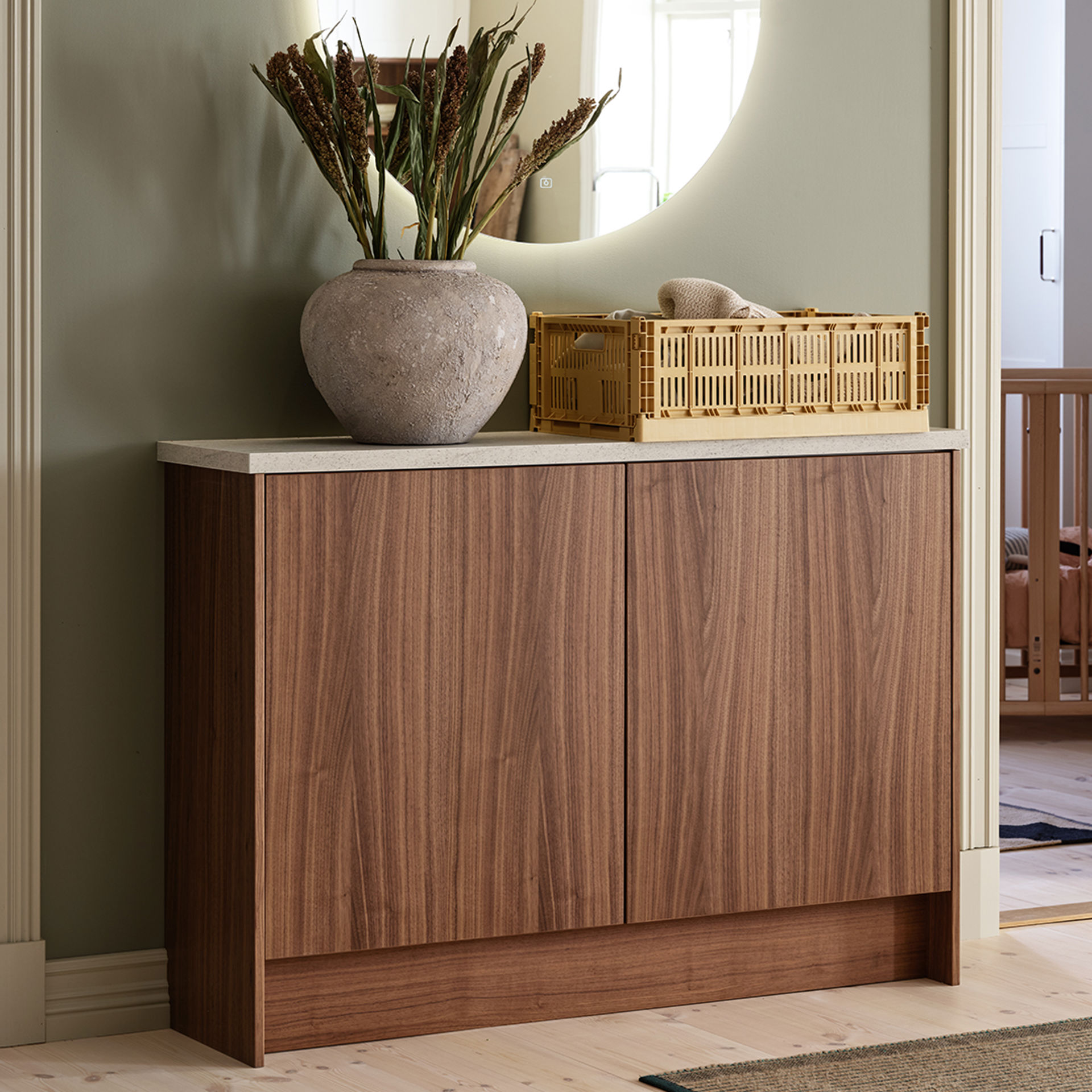 Molly finns även som vitrinlucka utan spröjs som passar dig som vill ha ett enklare formspråk – eller kombinera med Ester vitrin med spröjs för en mer traditionell känsla.