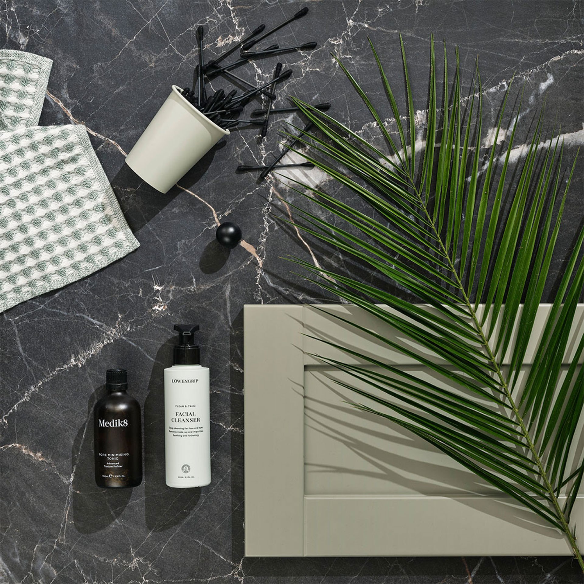 Rengör med en fuktig trasa med milt rengöringsmedel utan slipeffekt, ex. milt diskmedel alternativt medel som är avsedda för blanka ytor. Materialet tål max 70 grader. För att ge ytan ett extra skydd rekommenderas att man använder naturligt vax (ex. bivax) en gång per månad. Det är möjligt att ta bort små sprickor/skador med fint våtslippapper. Använd först papper med grovlek 1500 korn, och om nödvändigt, byt det till papper med grovlek 3000 korn. Därefter skall ytan poleras med en finkornig polerpasta som är avsedd för användning på målade ytor. Kalkrester kan tas bort med en blandning av ättika och vatten.