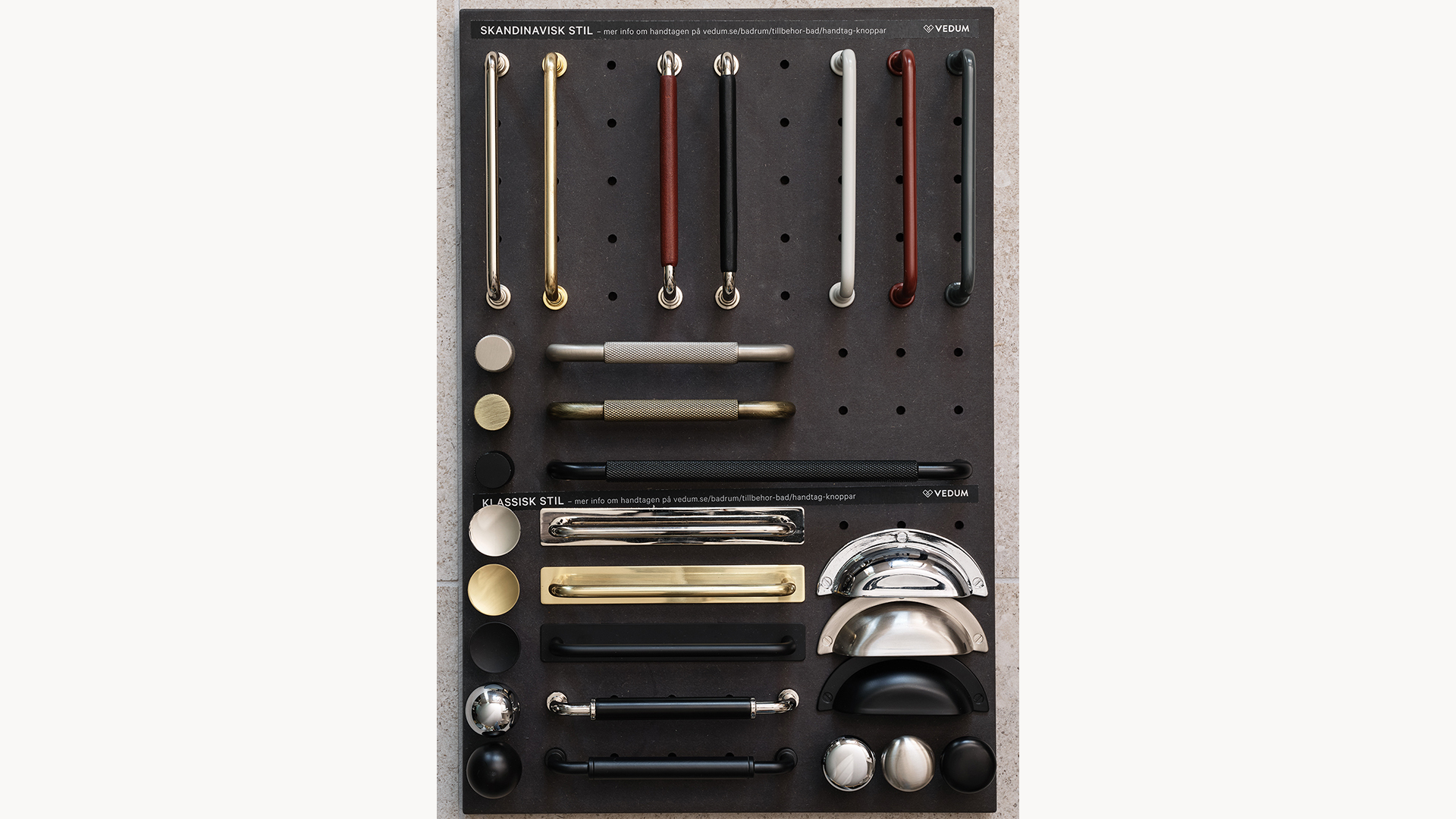 Hur ska du montera din handtagstavla för skandinavisk/klassisk stil? Bilden nedan demonstrerar i vilken ordning du ska placera alla handtag. Skruva sedan fast ett handtag i taget med medföljande skruvar.