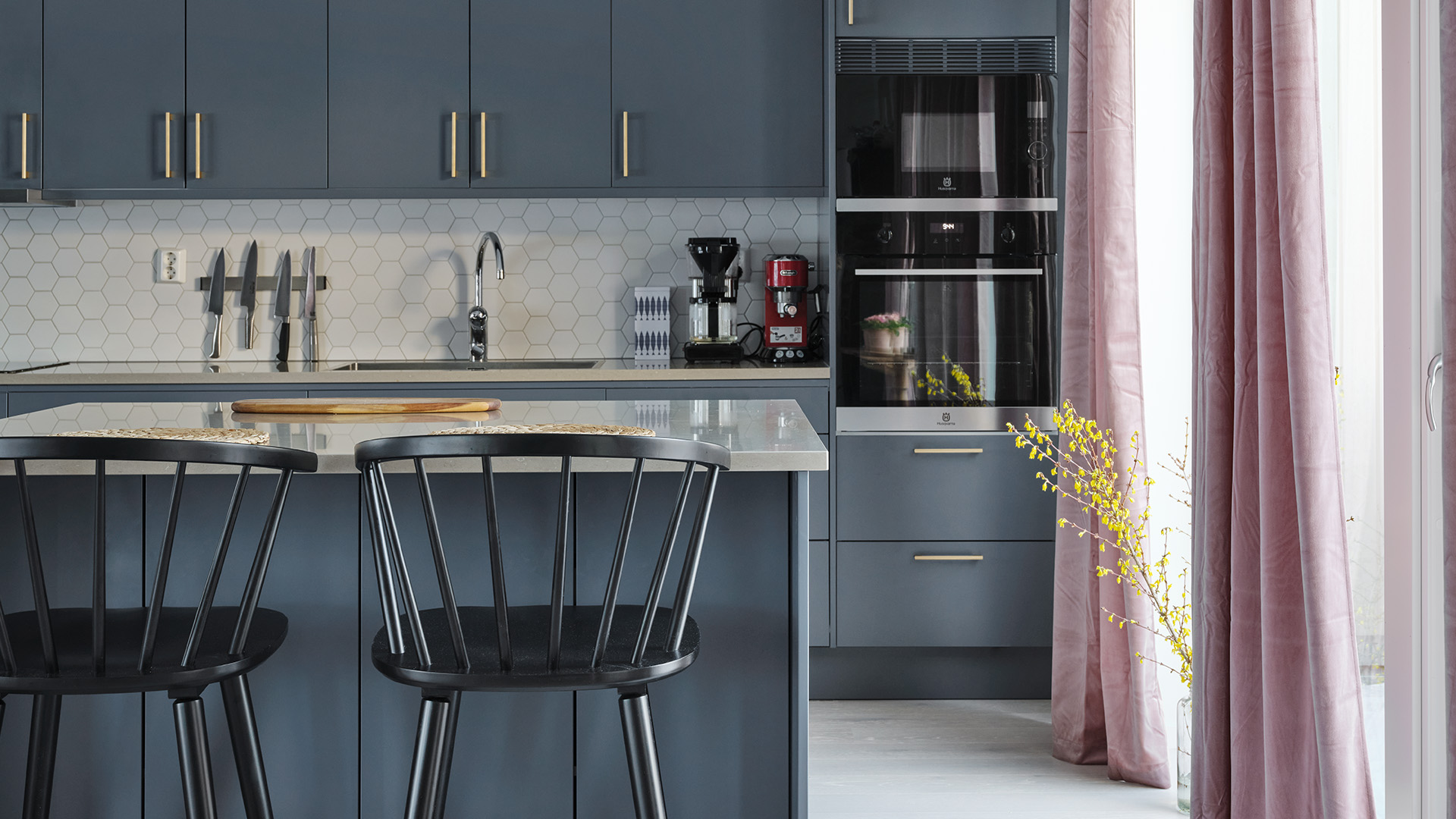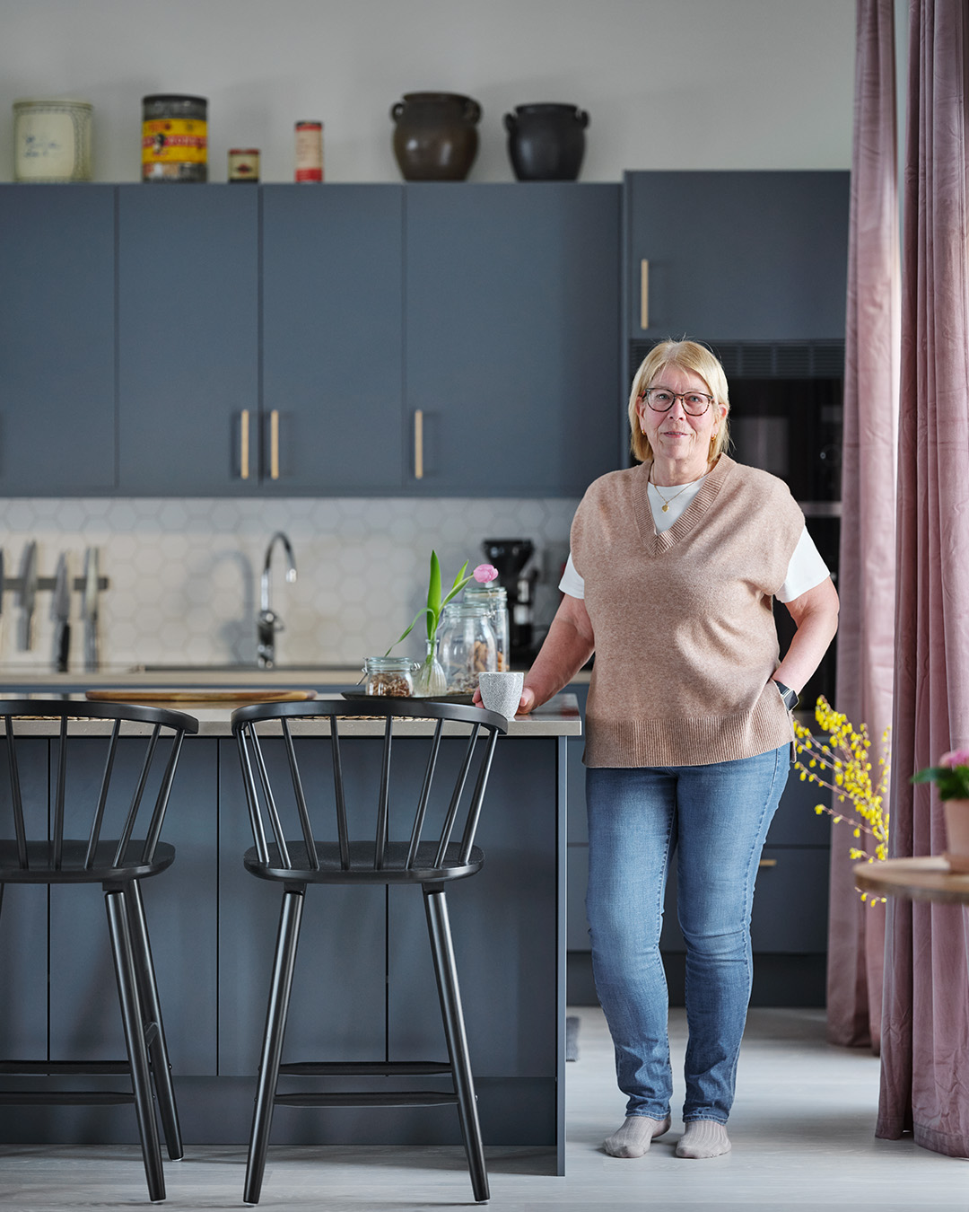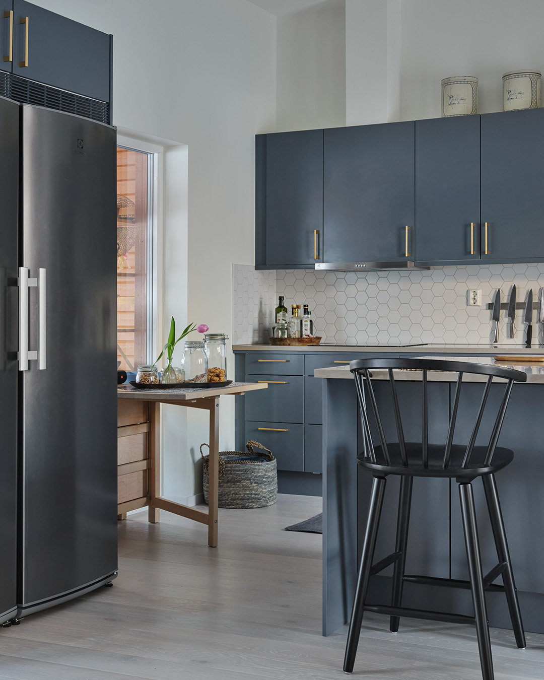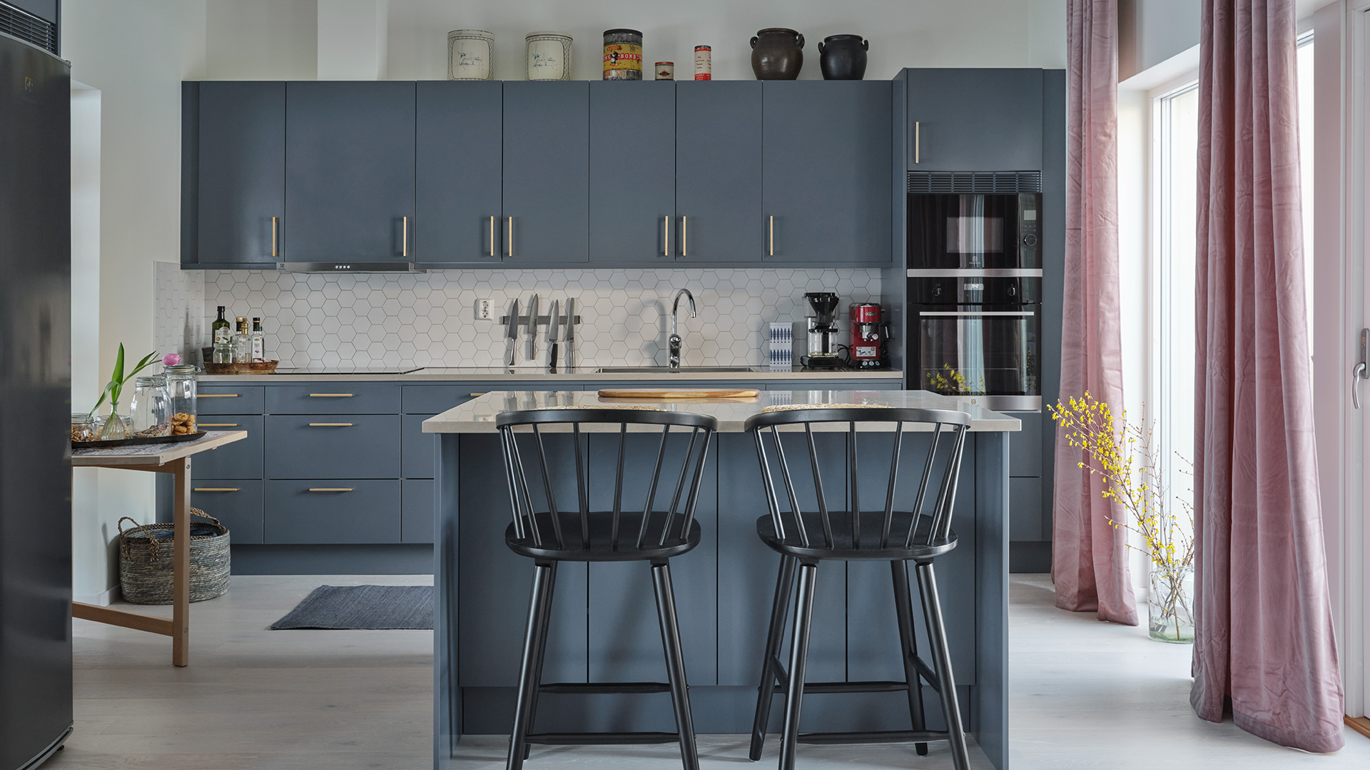 – När vi såg det blå köket från Vedum var det ett självklart val, och nu har jag äntligen fått mitt blå drömkök. Jag och min man älskar att vara här och baka, laga mat och dricka ett glas gott vin tillsammans, säger hon.