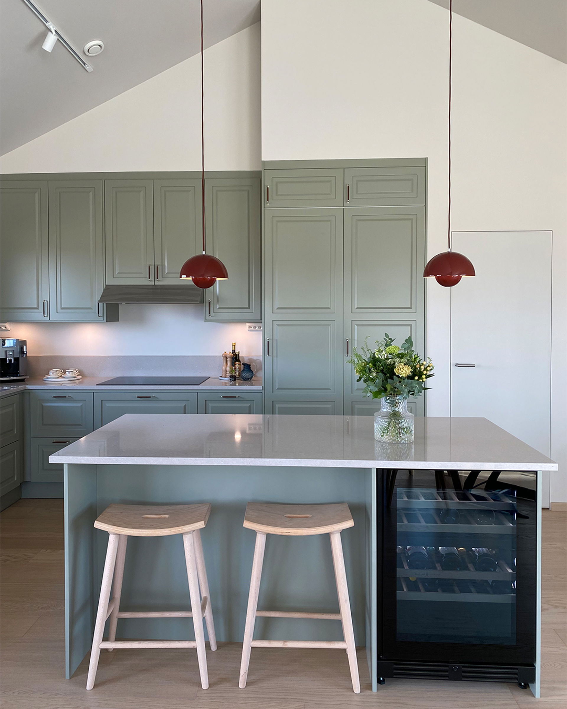 Strax utanför Varberg, i ett öppet landskap bland åkrar och kohagar, står ett nybyggt ladhus med ett tydligt personligt uttryck. Här bor Estelle och Hampus och deras två barn Noomi och Otis. Familjen flyttade in i sitt nya hem i mars 2024 – ett hem där livet ska få levas fullt ut, och där köket blev den naturliga mittpunkten.