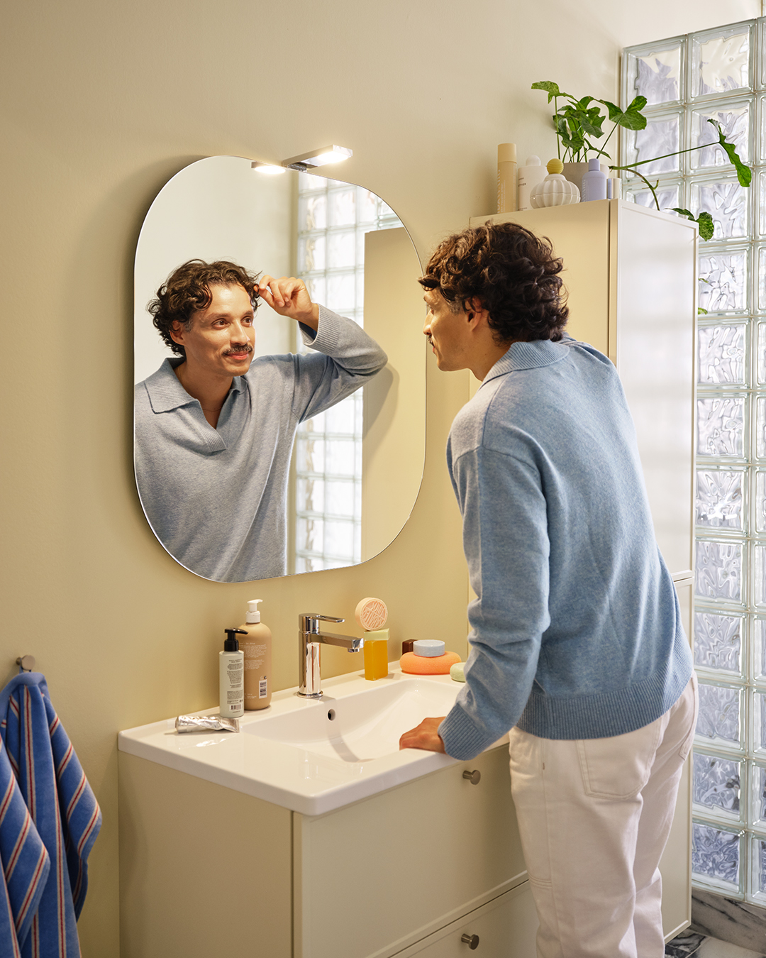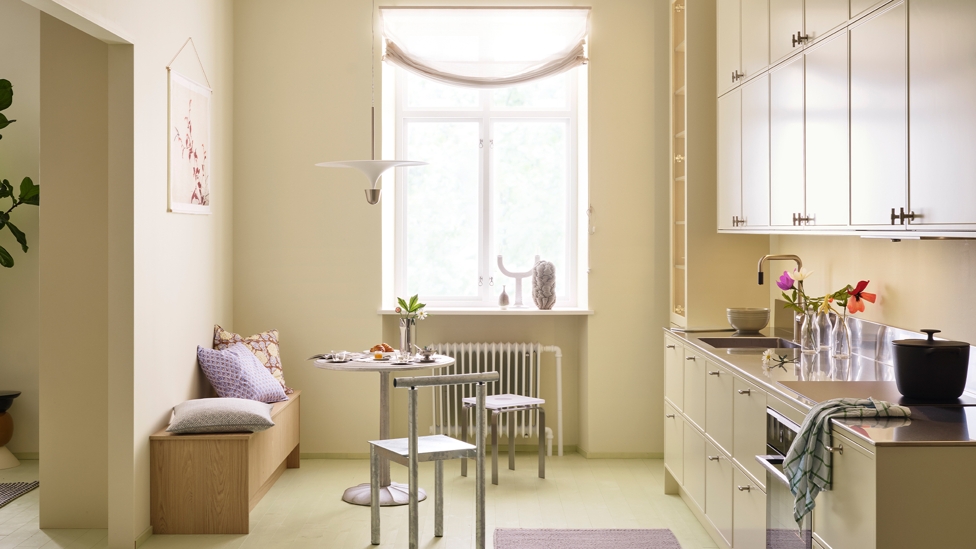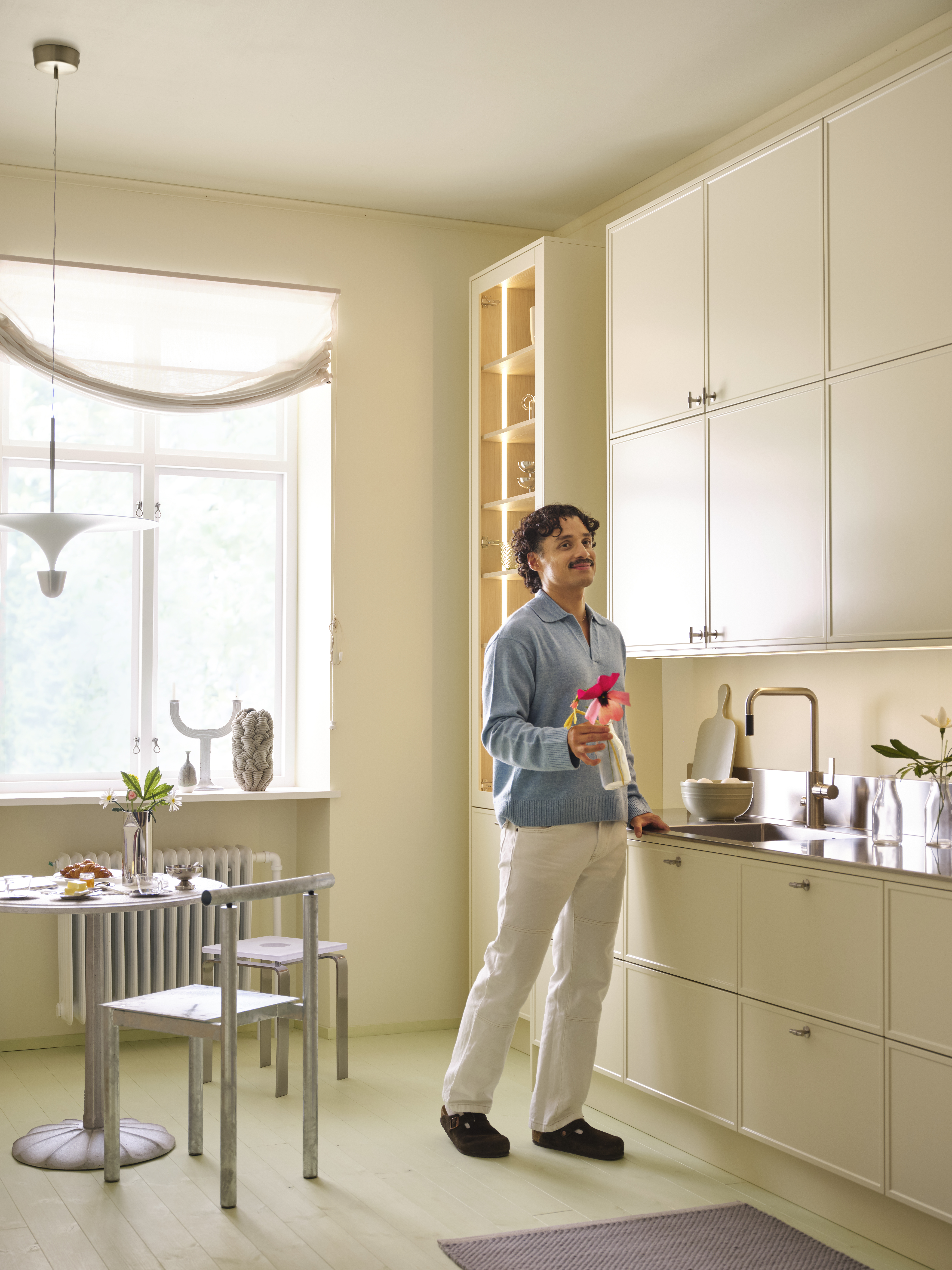 Genom att addera textur, form och material vill han skapa han en varm och inspirerande helhet där varje detalj känns viktig och andas omtanke. Det är en ambition som vi delar och känner igen oss i. Därför är vi glada över att han tillsammans med oss skapat våra nya cremegula kök och badrum, så vi kan berätta nya historier om vår gemensamma omtanke för det personliga hemmet.