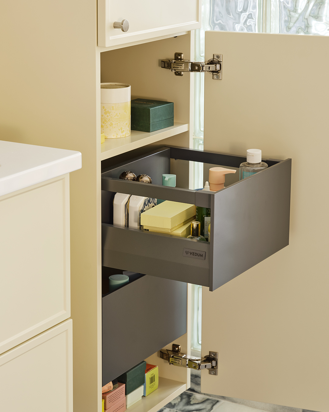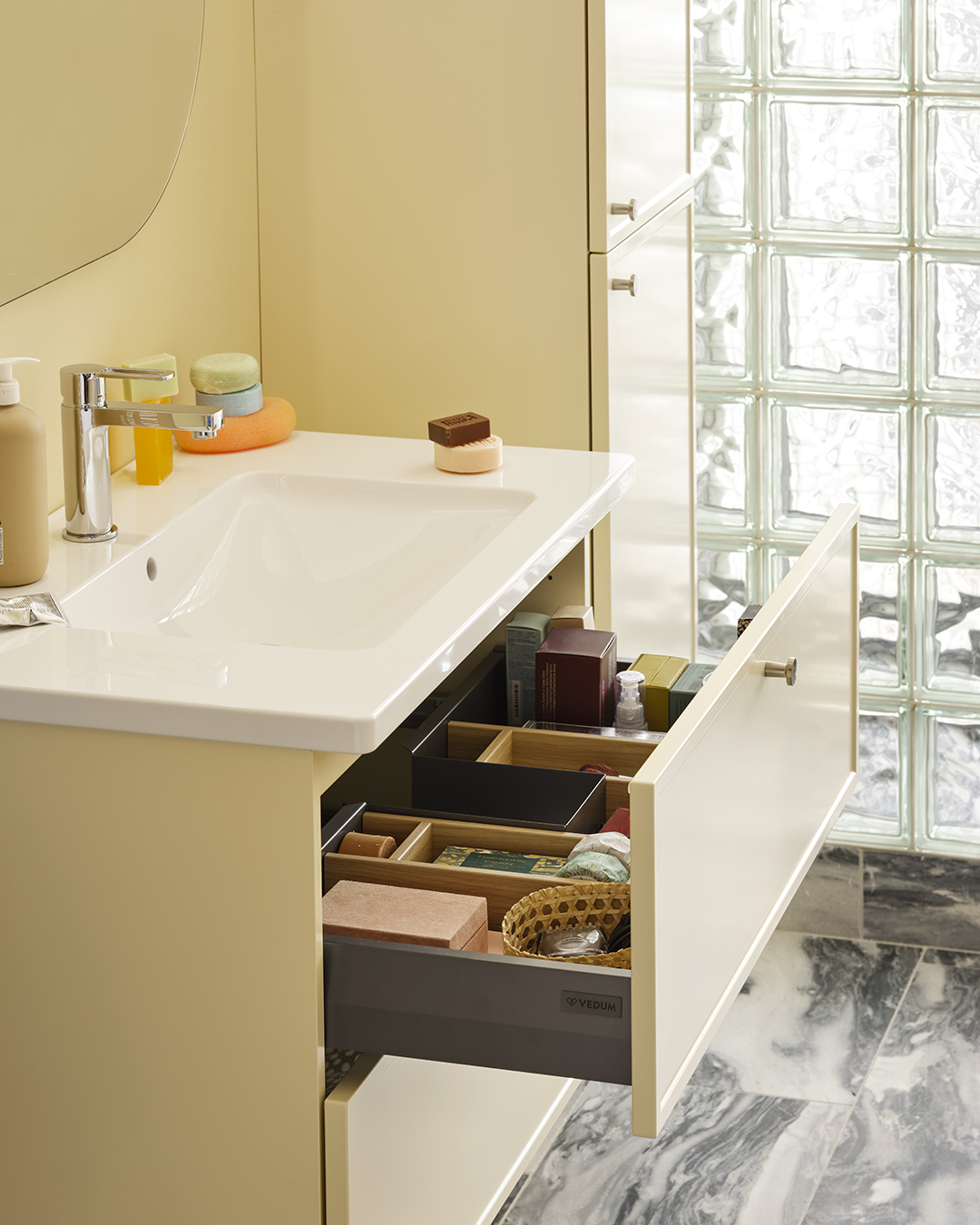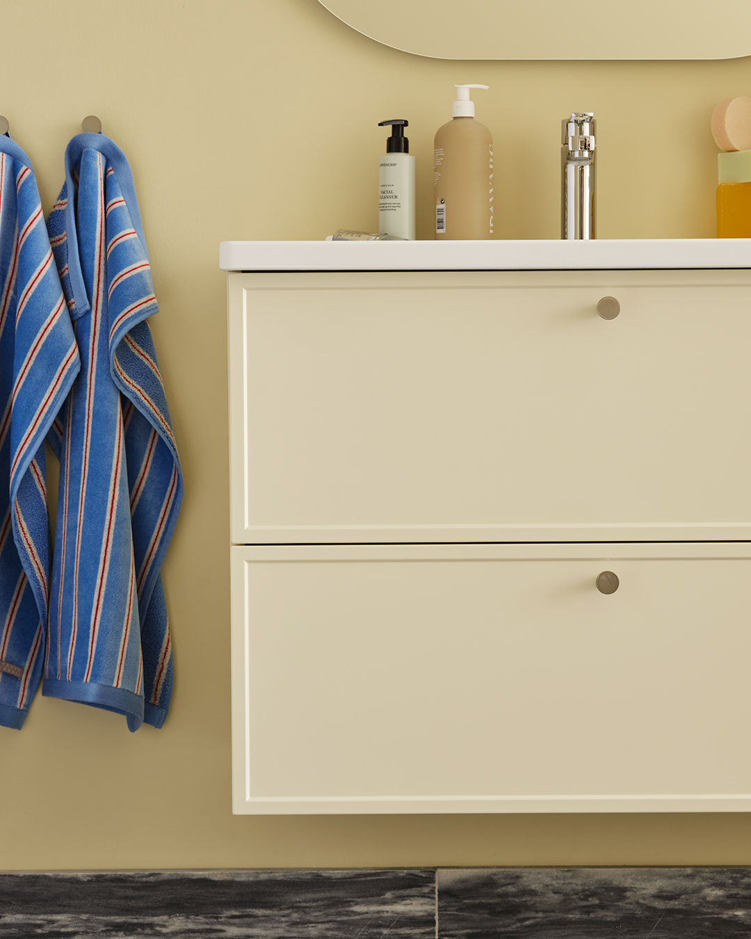 Genom att addera textur, form och material vill han skapa han en varm och inspirerande helhet där varje detalj känns viktig och andas omtanke. Det är en ambition som vi delar och känner igen oss i. Därför är vi glada över att han tillsammans med oss skapat våra nya cremegula kök och badrum, så vi kan berätta nya historier om vår gemensamma omtanke för det personliga hemmet.