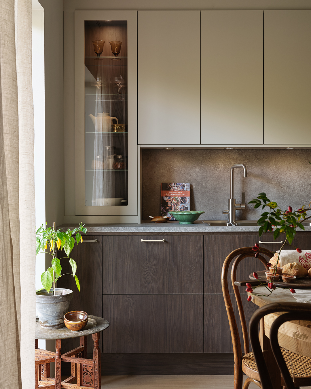Vår omtanke för både omvärld och hem handlar om att skapa platser som är långsiktigt hållbara. Ida Magntorn, inredare och stylist med specialintresse för vintage, formar rum där ny inredning, äldre möbler och personliga detaljer talar till varandra på ett naturligt sätt. Hon menar att hemmet blir mer levande och trivsamt när olika epoker, texturer och uttryck möts.