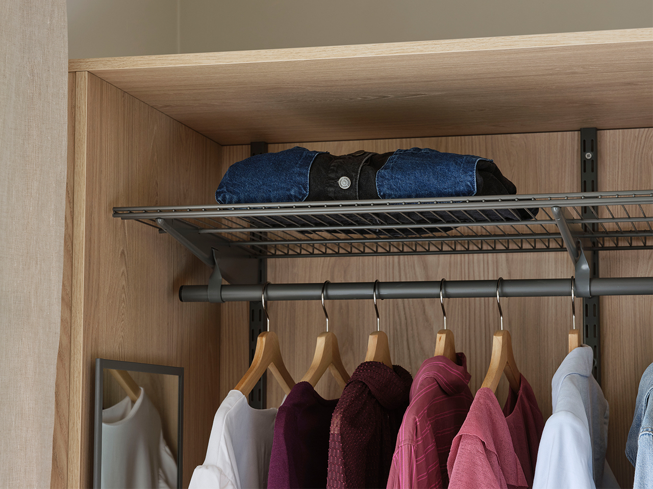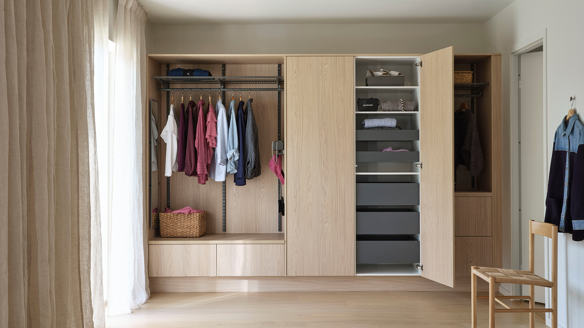 Ett ljust dressingroom med platsbyggd känsla och smarta lösningar.