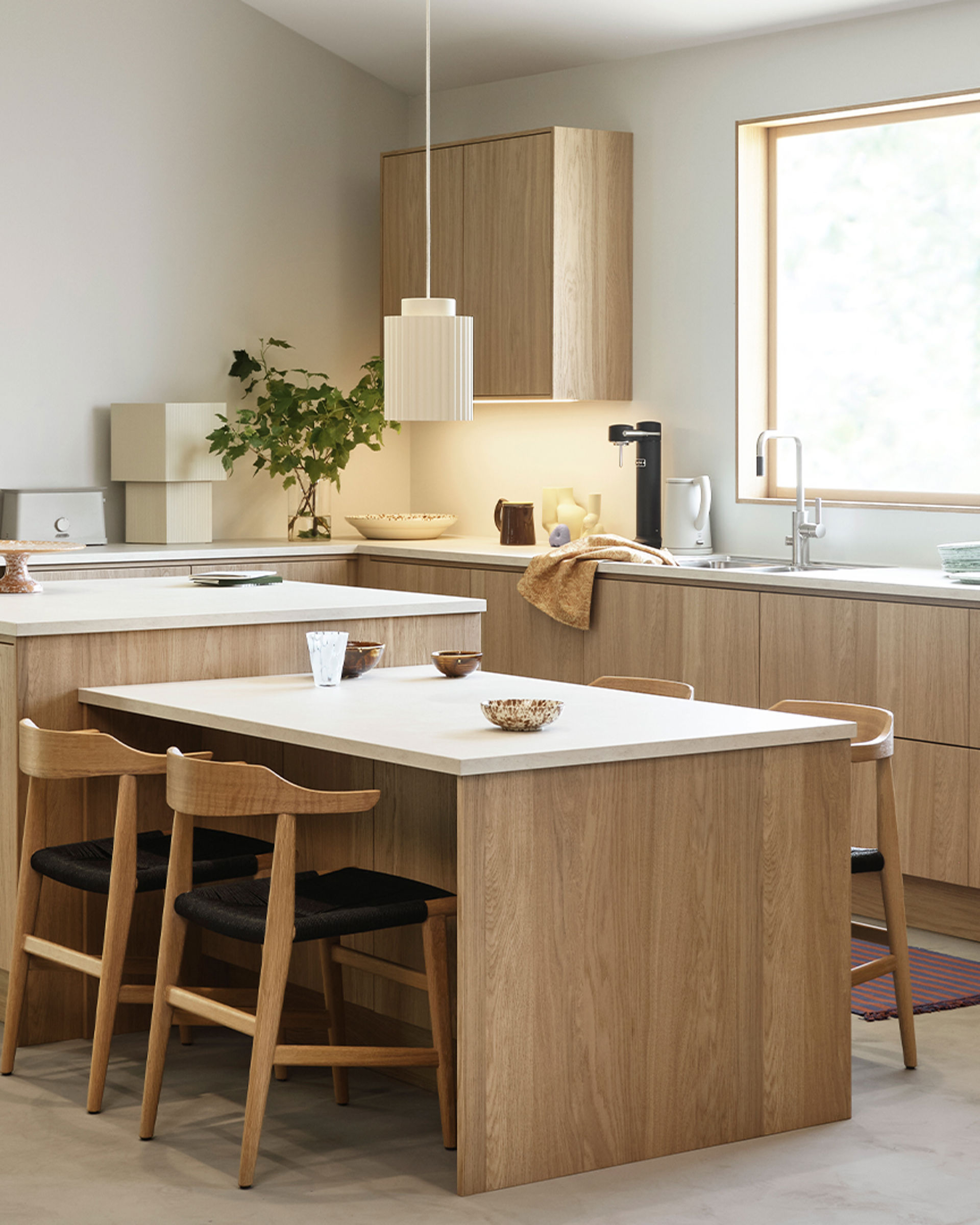 – Vi ser allt oftare hur köksön ersätter den traditionella matplatsen i de kök som vi ritar. Den är vacker – och ger massor av extra förvaring och arbetsyta. Och vem kan motstå ett vackert inslag som dessutom kan uppfylla så många önskemål på en och samma gång, säger Jenny Andersson, designansvarig på Vedum.
