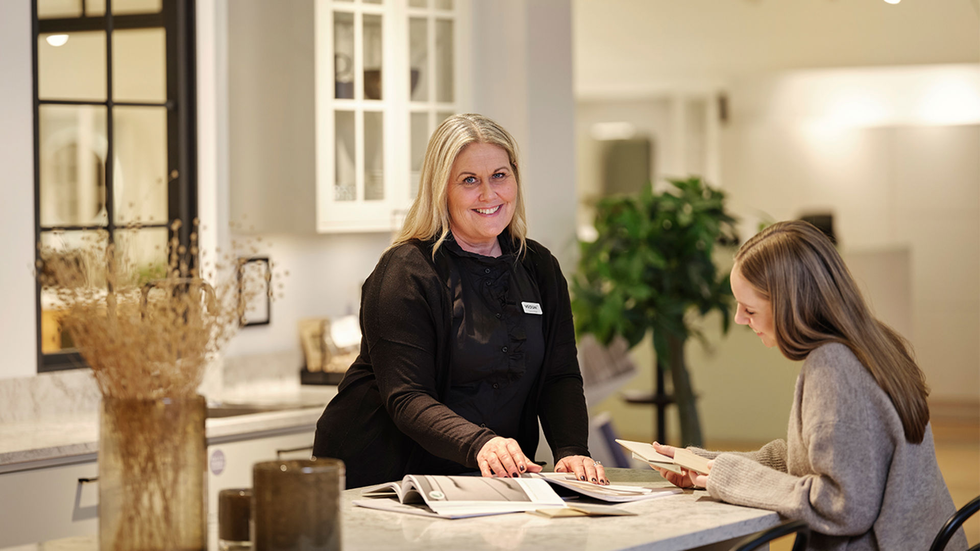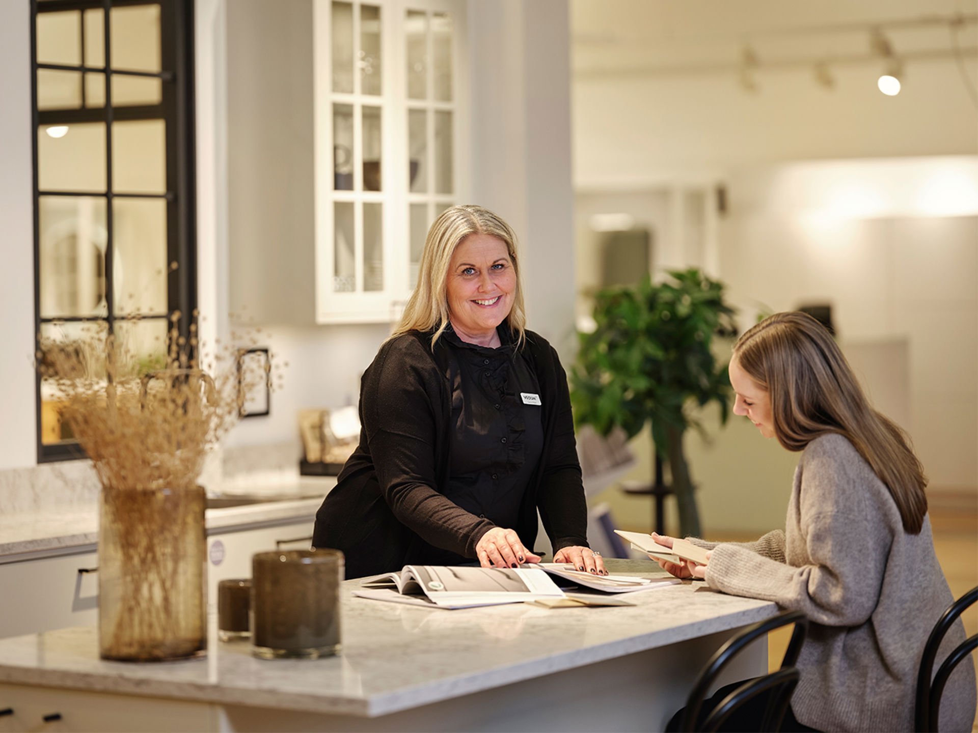 – Inget kök är det andra likt! Finns det en ”knivnörd” i familjen måste man tänka till vad gäller förvaring av kockknivarna. Den bakintresserade kanske vill få in förvaring för ett bakbord någonstans. I de flesta kök blir det över ytor med lite svåra mått, någon decimeter bara. När jag ritar kök är det självklart att jag försöker nyttja varje millimeter. Då brukar jag exempelvis passa på att nyttja dessa ytor för utdragbara smala skåp där flaskor med olja, vinäger och kryddor får plats! Det viktigaste när man planerar sitt kök är funktionalitet och bra ytor för socialt umgänge. I min värld är det faktiskt viktigare än det estetiska, för det är det som avgör hur stor användning du har för ditt kök, säger Lisbeth Fogel, köksinredare på Vedum.