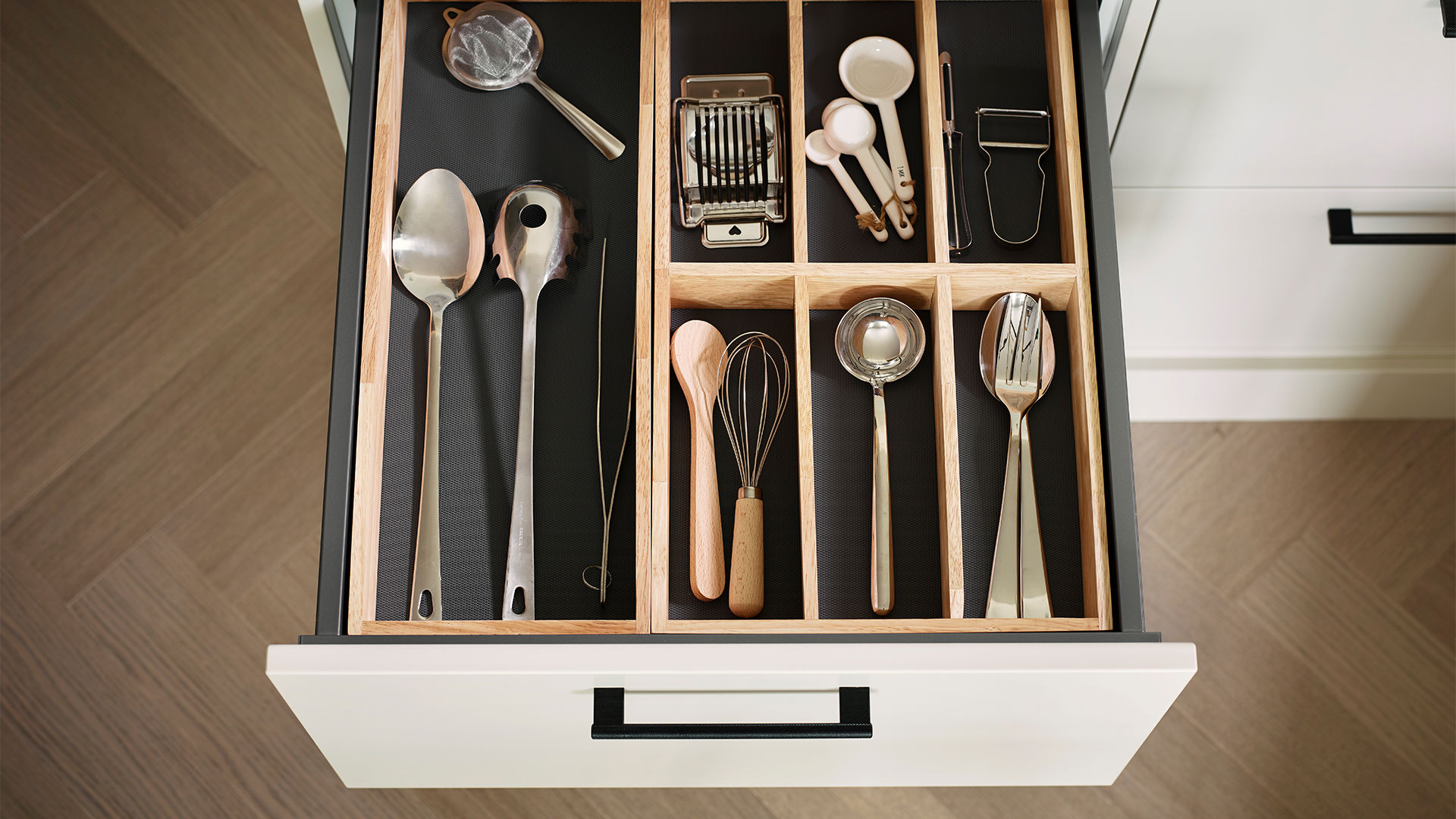 Ett naturligt stilrent och samtidigt varmt kök med svarta detaljer.