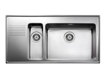 En stilren diskbänk med strama linjer och avrundade hörn. Omnia finns som stor diskho, dubbel diskho och diskho med avrinningsyta, finns även en liten diskho för små köksskåp. Svensktillverkad.