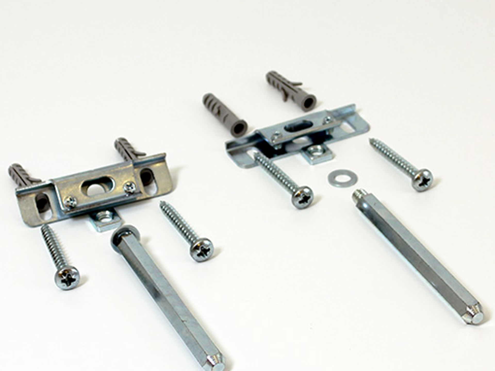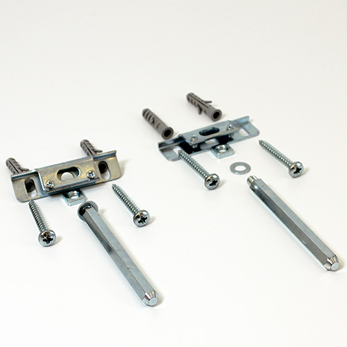 Beslagspåse med två spjutbeslag som passar till fanerade vägghyllor art.nr 3540-3549, djup 200 mm för dolda beslag bakom hyllan.
