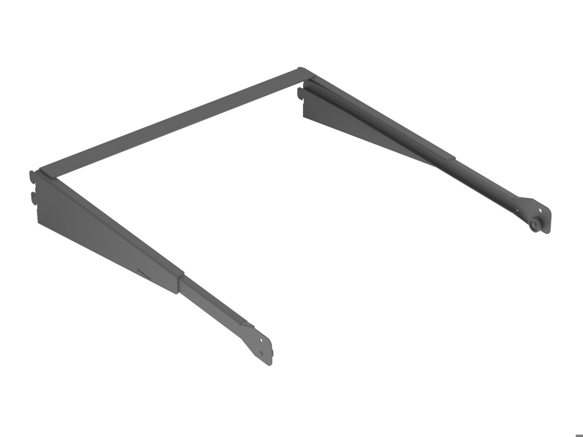 Konsolram Ax med rullskena i tre bredder, för montering på hängskena Ax vägg. I konsolramen kan Ax trådbackar, trådhyllor, skohyllor och byxhängare i bredd 500, 600 och 800 placeras.