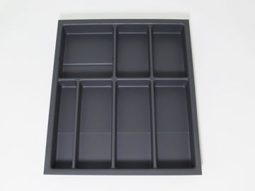 Besticklåda i grå plast som håller ordning på dina bestick och köksredskap. För placering i lådor med djup 550 mm. Flyttbara avdelare med artikelnummer 30320 finns som tillbehör till de breda facken. Finns i flera bredder x djup 480 mm.