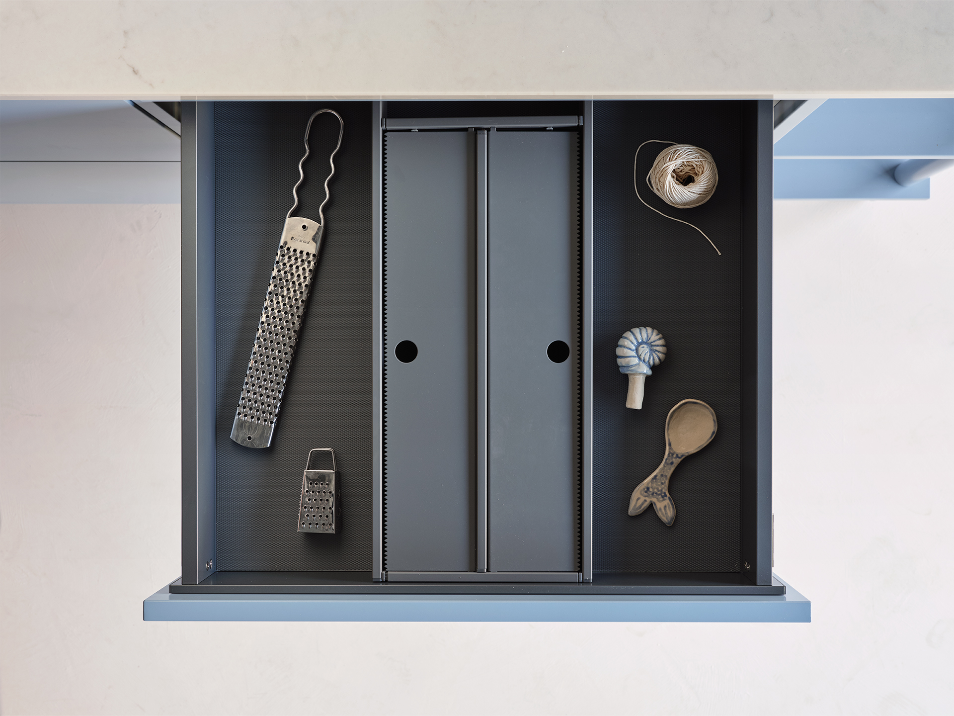 Folieinsats för fullutdragslåda One/Classic/Scala i låddjup 500. Mörkgrå. Passar lådbredd 300 och uppåt. Gummimatta rekommenderas i botten på lådan.