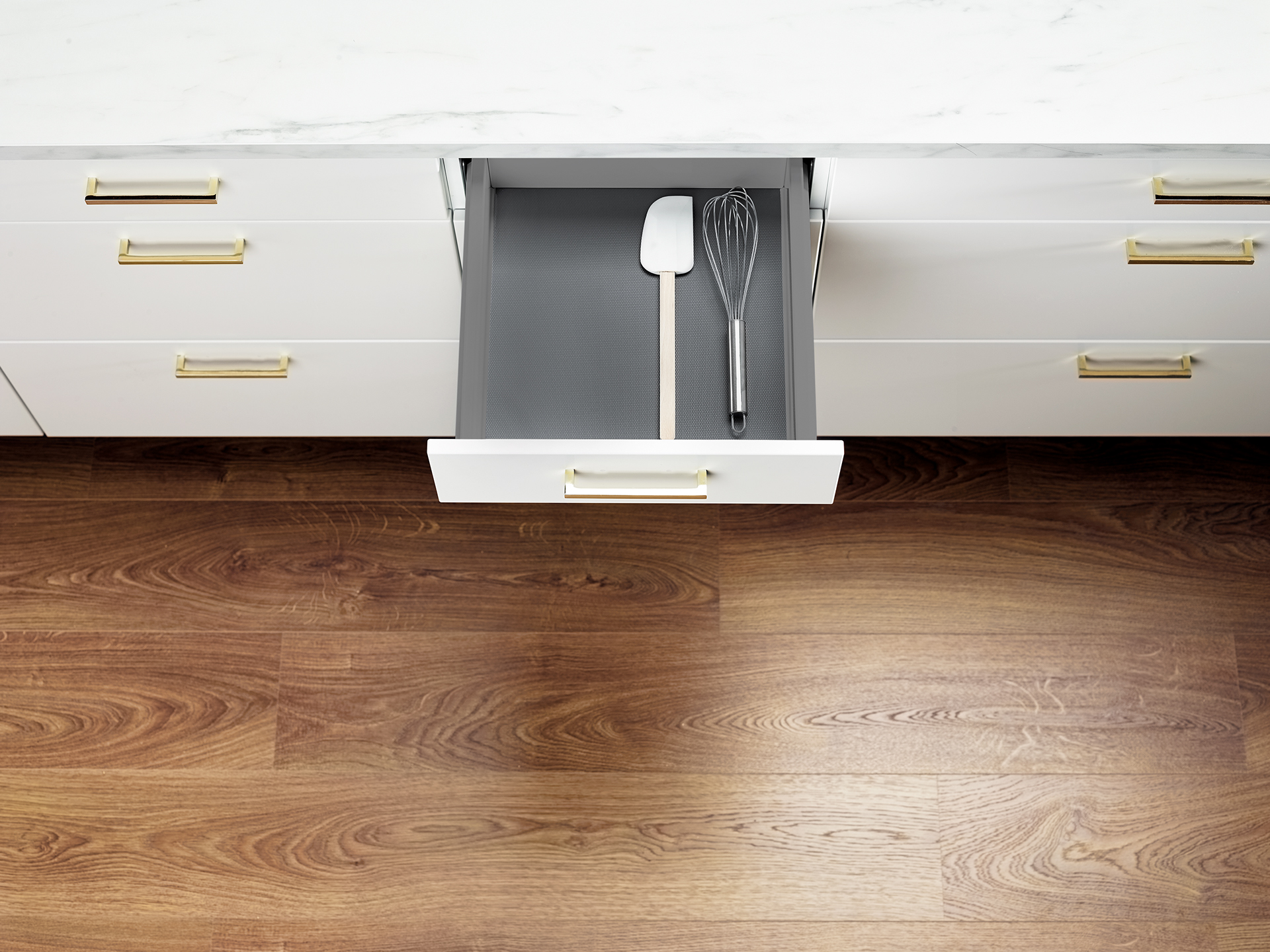 Gummimattan fungerar som glidskydd för porslin och köksredskap i lådan. Dämpar ljud och skyddar mot repor. För placering i botten på lådor med djup 350 mm. Ingår som standard i alla lådor med front i höjd 96/231/282/346/568 mm.