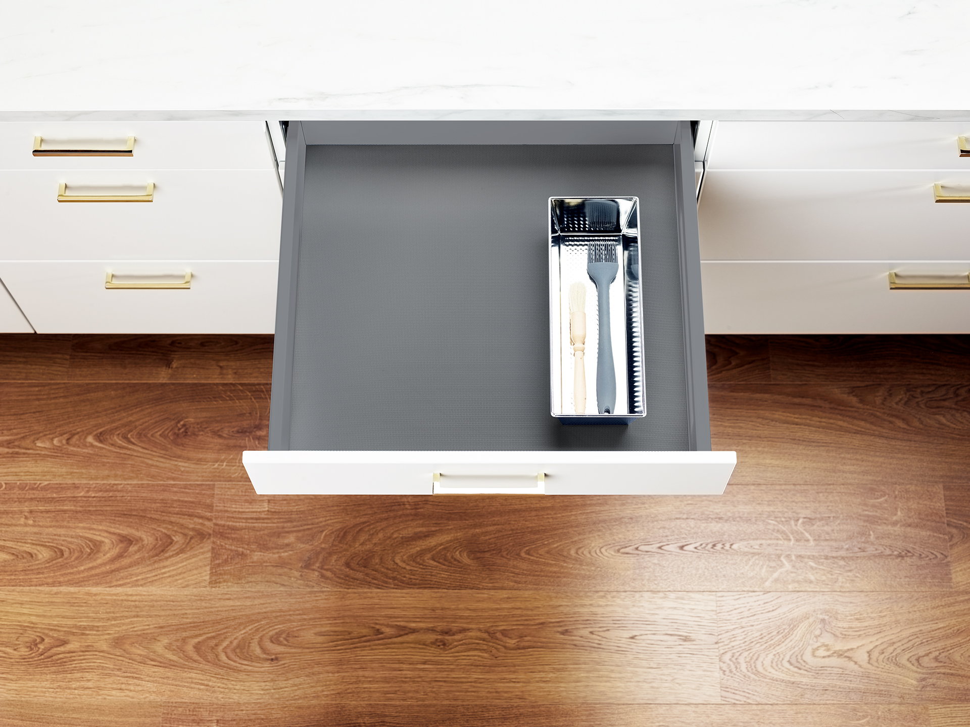 Gummimattan fungerar som glidskydd för porslin och köksredskap i lådan. Dämpar ljud och skyddar mot repor. För placering i botten på lådor med djup 500 mm. Ingår som standard i alla lådor med front i höjd 96/231/282/346/568 mm.