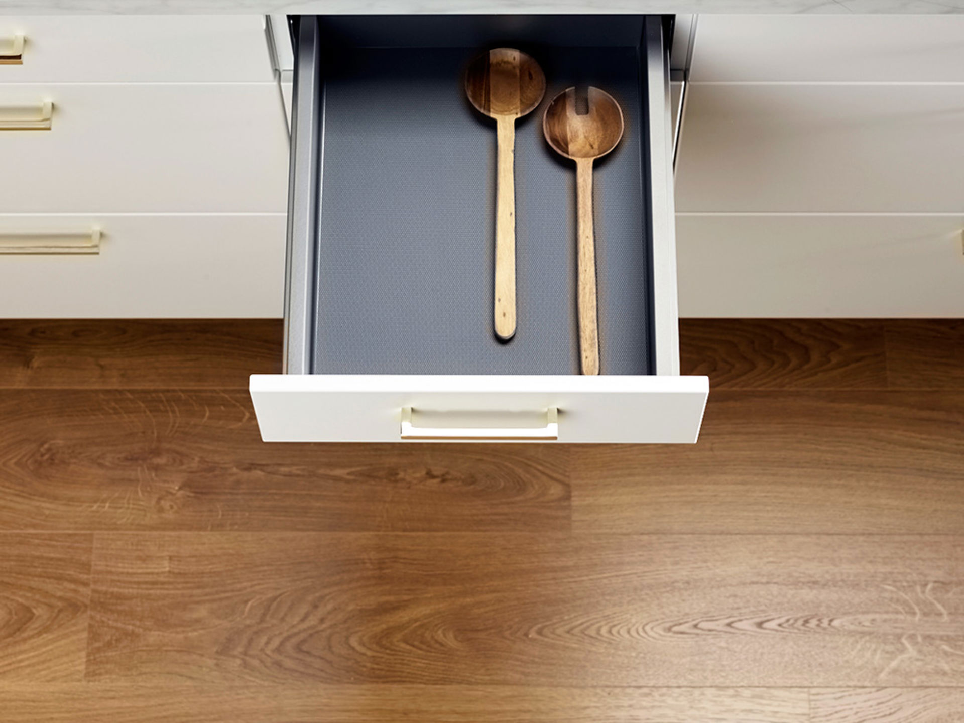 Gummimattan fungerar som glidskydd för porslin och köksredskap i lådan. Dämpar ljud och skyddar mot repor. För placering i botten på lådor med djup 400 mm. Ingår som standard i alla lådor med front i höjd 96/231/282/346/568 mm.