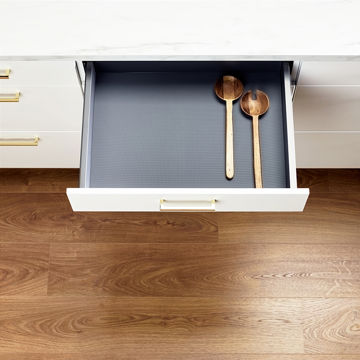 Gummimattan fungerar som glidskydd för porslin och köksredskap i lådan. Dämpar ljud och skyddar mot repor. För placering i botten på lådor med djup 400 mm. Ingår som standard i alla lådor med front i höjd 96/231/282/346/568 mm. Mått: Finns i flera bredder x djup 380 mm.