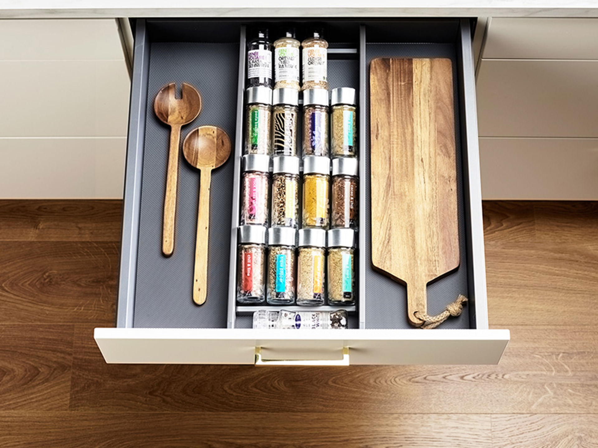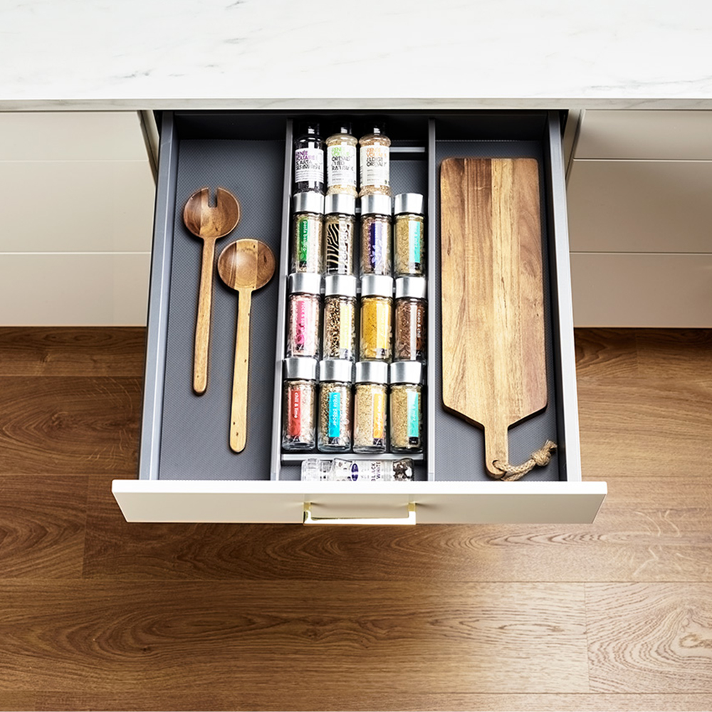 Kryddinsats för låda Scala i låddjup 550. Antracitgrå lackad plåt. Passar lådbredd 300 och uppåt. Gummimatta rekommenderas i botten på lådan.
