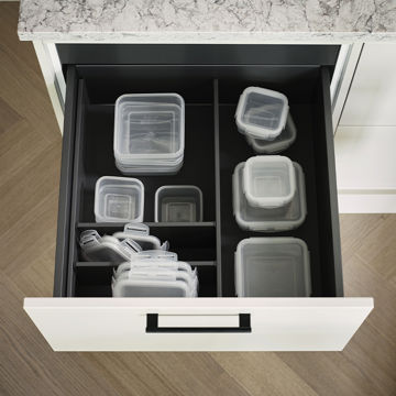 Lådavdelare Kanel är en flexibel inredning för höga lådor, scalagrå lackad plåt, enkelt montage och justerbara avdelare. Passar i höga Scalalådor djup 550 mm. Bredd 318 mm, höjd 130 mm och djup 523 mm. Gummimatta art.nr 30763-69 rekommenderas i botten på lådan.