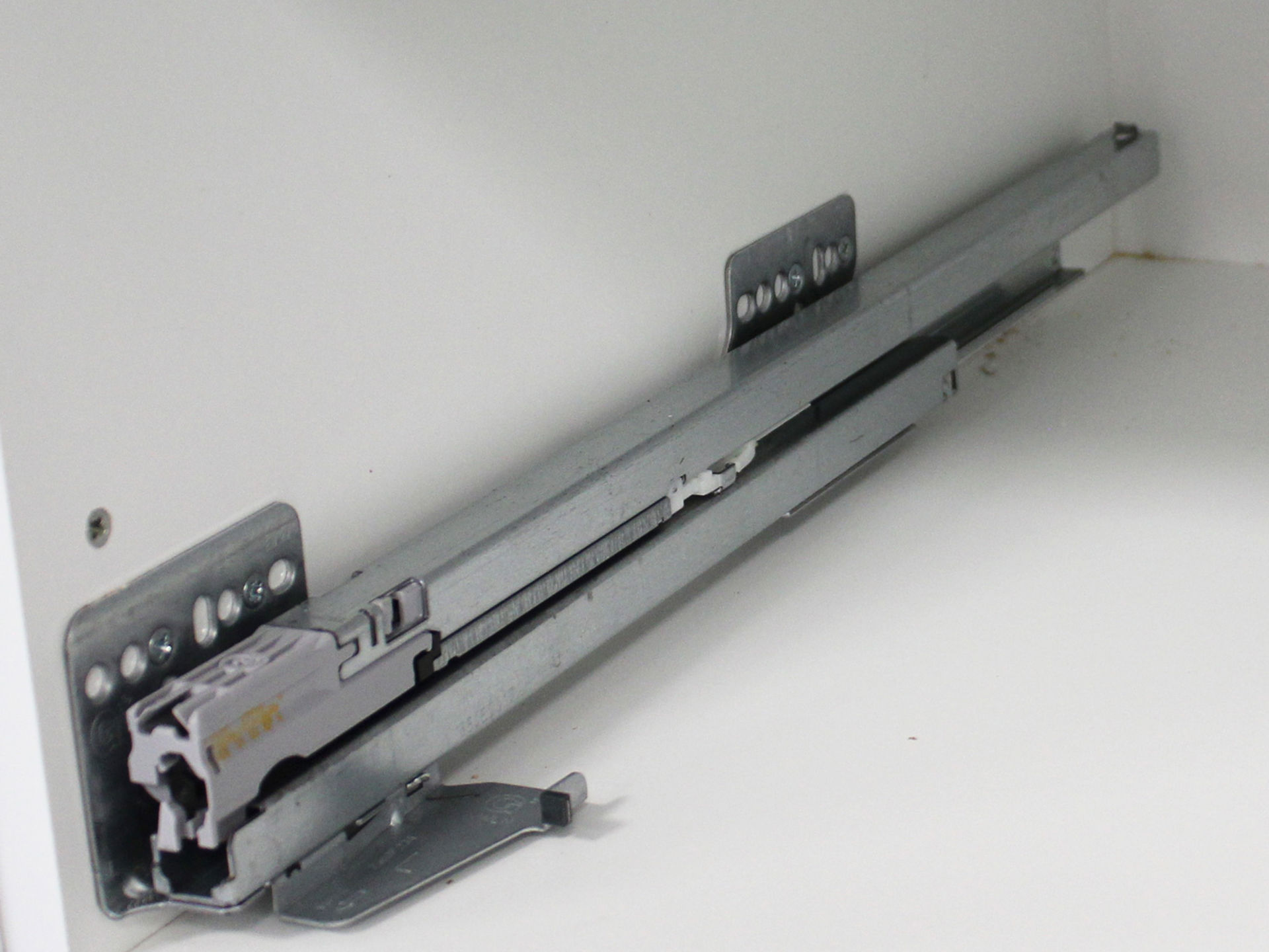 Fullutdragsskena med dämpning djup 500, vänster. Passar Scala och One lådor i djup 500. Två skenor (höger och vänster) skruvas i skåpstommen med systemskruv.
