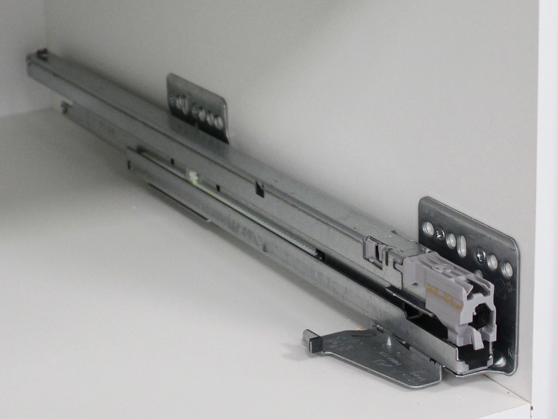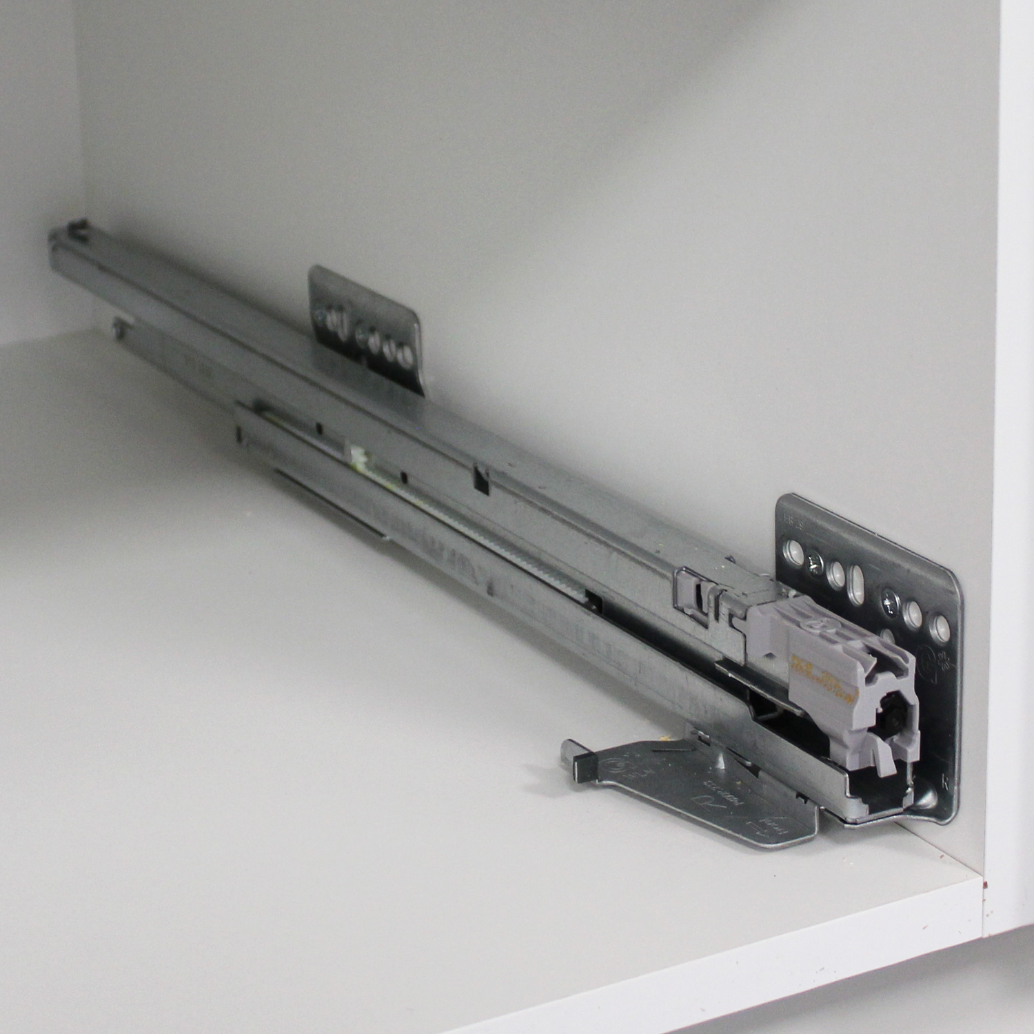 Fullutdragsskena med dämpning djup 550, höger. Passar Scala lådor i djup 550. Två skenor (höger och vänster) skruvas i skåpstommen med systemskruv.