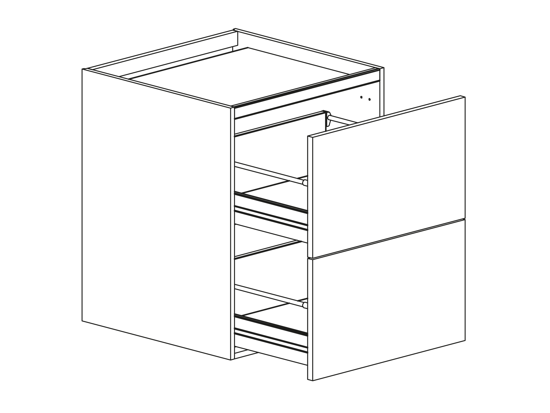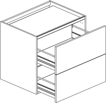 Bänkskåp för häll utan ventilation med två lådor 600mm, DUO-fronter