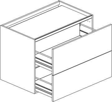 Bänkskåp för häll med två fullutdragslådor DUO, välj One låddjup 500 mm- eller Scalalådor djup 550 mm. Välj front och utförande. Kan fås med invändig låg låda i översta fullutdragslådan. Gummimattor ingår i båda lådorna. Skyddsplåt ingår upptill mot hällen (monteras på plats). Skåpet finns i flera bredder. Som tillbehör finns 30994 Öppningshake för invändig låda (ej i kombination med PUSH).