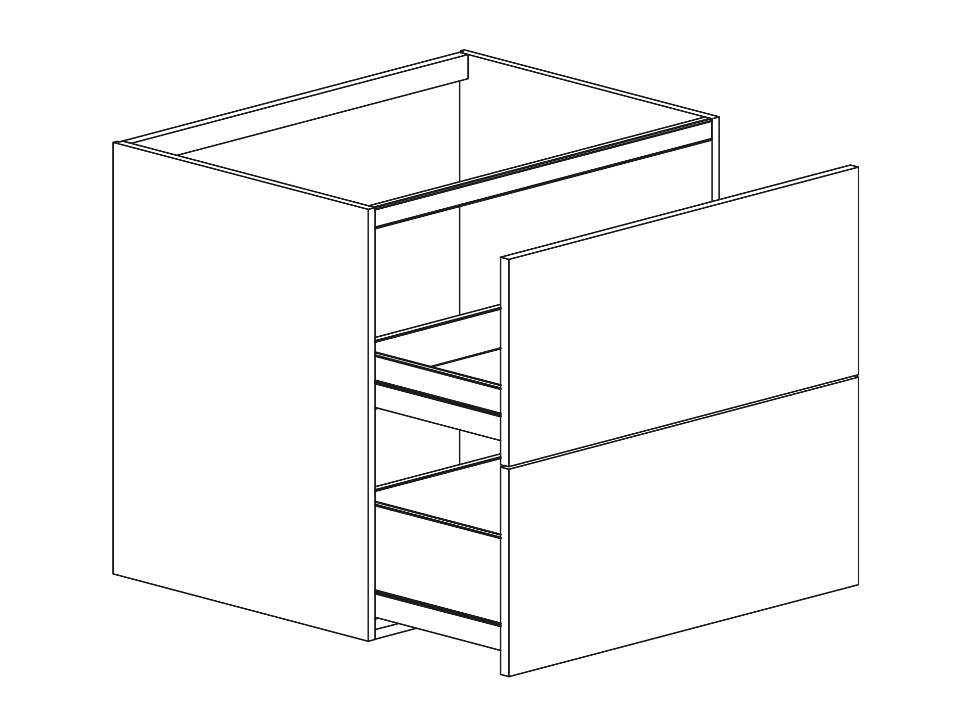 Bänkskåp för häll+fläkt med två lådor DUO Scala, höjd 720 djup 580