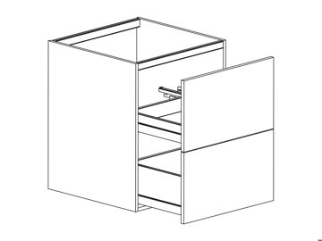 Bänkskåp för häll med fläkt, två lådor Scala 600mm, DUO-fronter