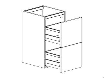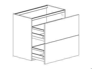 Bänkskåp med två DUO lådor, välj Onelådor i djup 350 mm eller Scalalådor i djup 400 mm. Välj front och utförande. Gummimattor ingår i lådorna. Skåpet finns i flera bredder. Invändiga lådor finns som tillbehör.